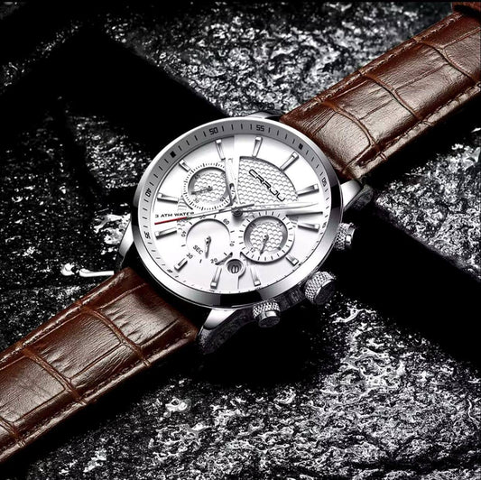CRRJU Brand 2212 Men Watches Leather Strap Quartz Casual Business Wrist Watch Fashion Chronograph Water Resistant