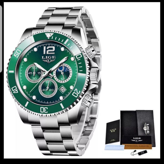 LIGE 8924 Men Waterproof Luxury Full Steel Watches Waterproof Date Clock Men's Quartz Watch
