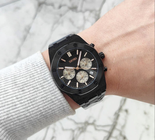 Luxury Skmei 9296 Stainless Steel Men Wrist Watch Waterproof Golden Watch Classic Business Wristwatch