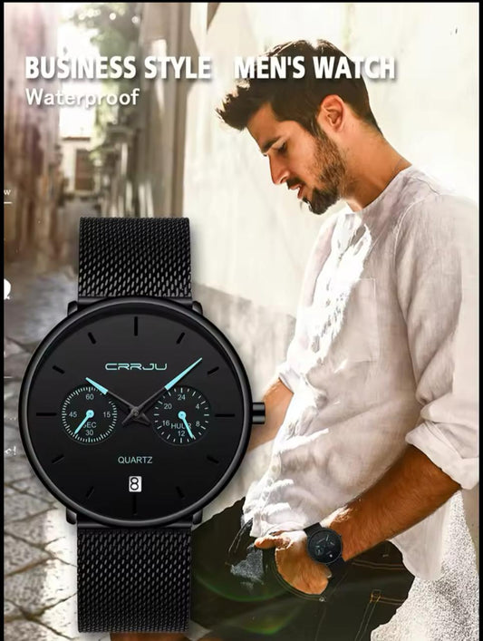 2025 CRRJU 2291 Top Brand Men Watch Chronograph Casual Fashion Waterproof Men's Watch Calendar Quartz Wristwatch