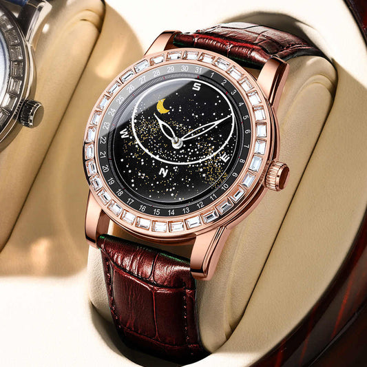 BINBOND B8899 Rotating Sky Star Disk Diamond Watch Men's Fashion Sun Moon Star Waterproof Glow Men's Watch Luminous