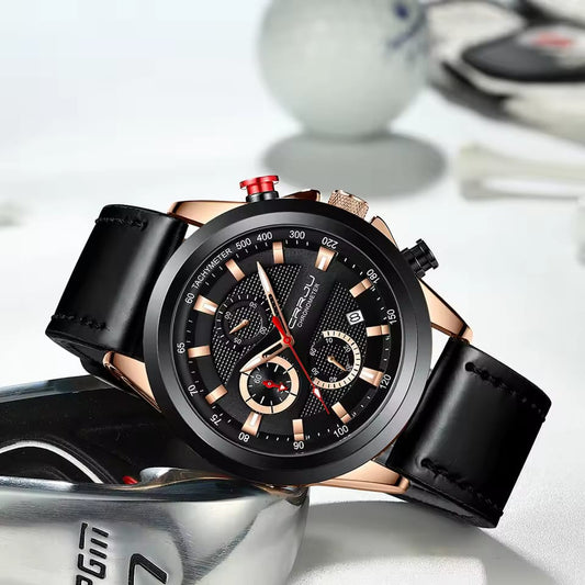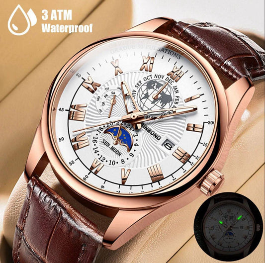 Binbond New Chronograph Leather B203L Men's Business Watch Multifunctional Waterproof Quartz Watch