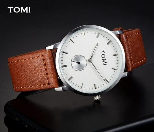 Top Brand TOMI Fashion Sport Quartz Men's Watch Square Clock Leather Strap Simple Dial Women Wristwatch