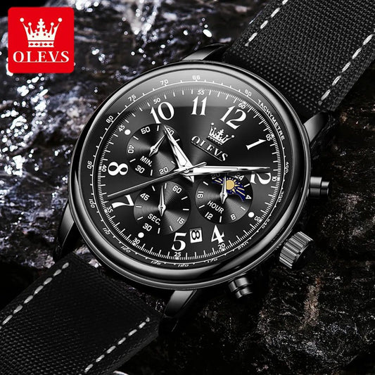 Multifunctional Chronograph moon phase OLEVS 2912 waterproof resistant Luminous Sports quartz watch for man