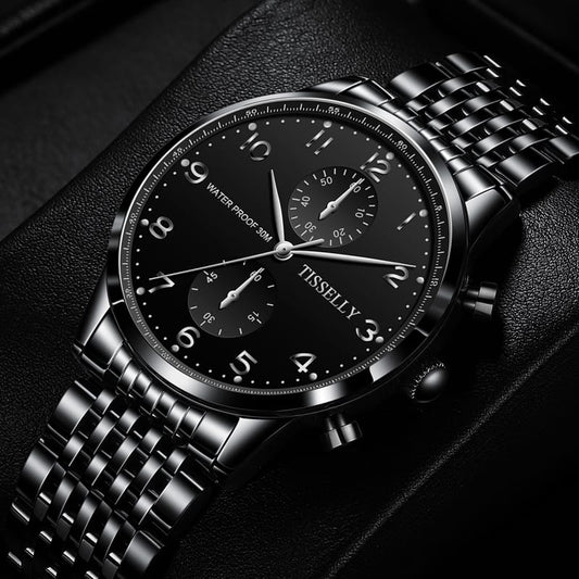 Tisselly T001 Luxury Quartz Watch Stainless Steel Back and Gold Mens Watch Analog Quartz Watch
