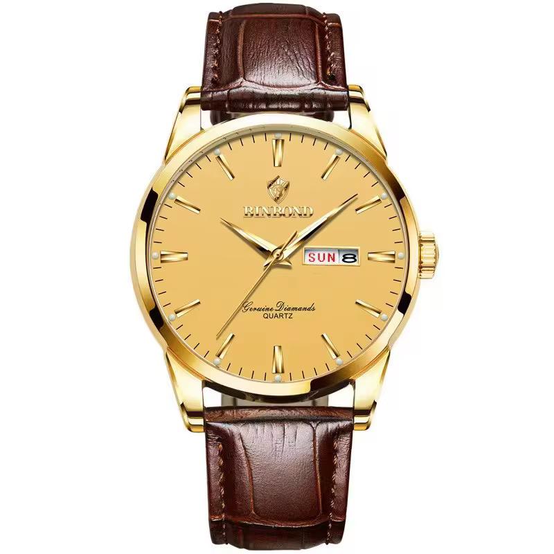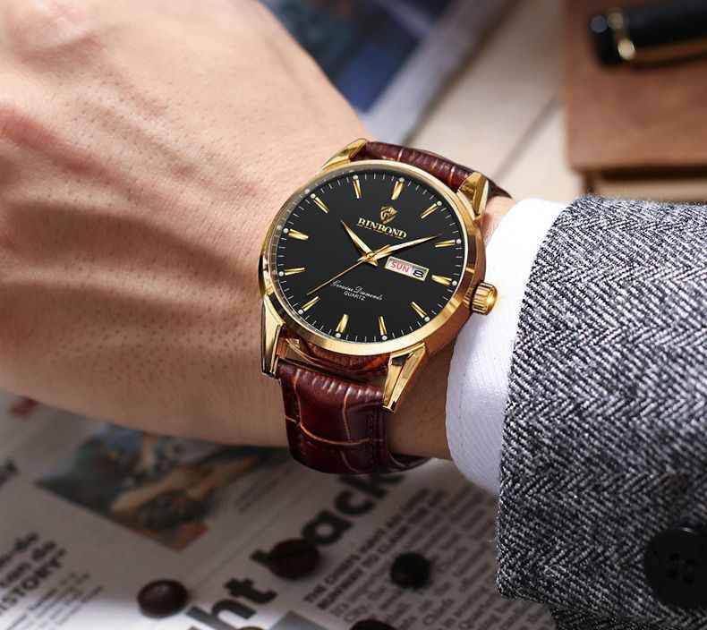BINBOND B2238 2238 Men Waterproof Calendar Quartz Top Luxury Wrist Leather Strap Watch