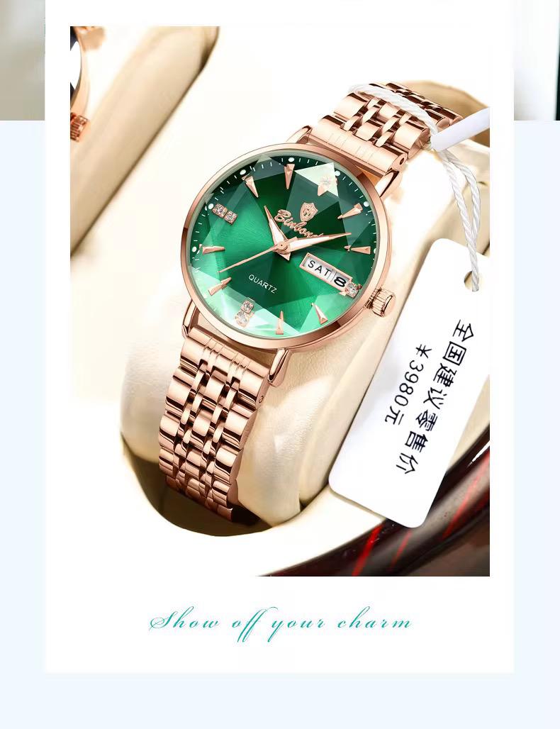 BINBOND N586 2024 New Women's Watch Fashion Diamond Mirror Quartz Steel Belt Student Watch