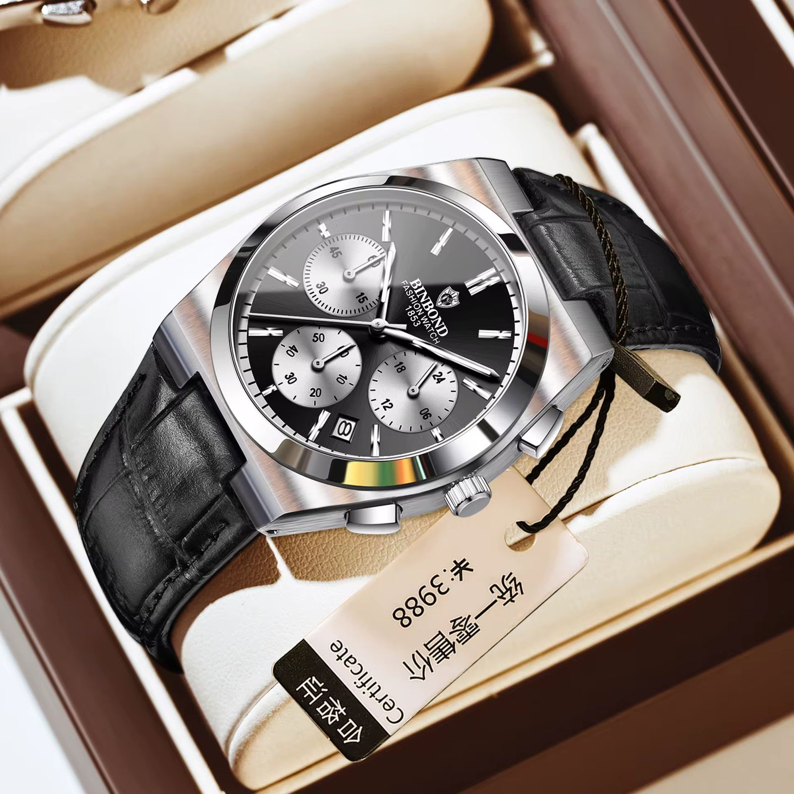Binbond New Chronograph Leather B203L Men's Business Watch Multifunctional Waterproof Quartz Watch