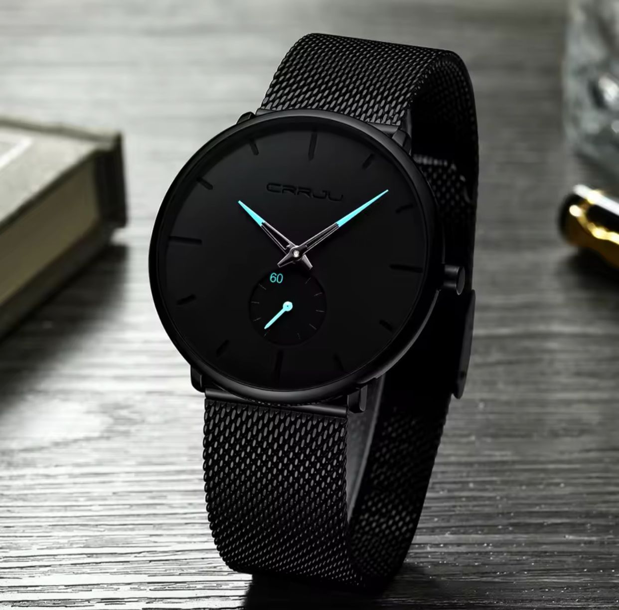 CRRJU 2150 Fashion Business Mens Luxury Quartz Watches Casual Mesh Steel Strap Waterproof Chronograph Sport Watch For Men