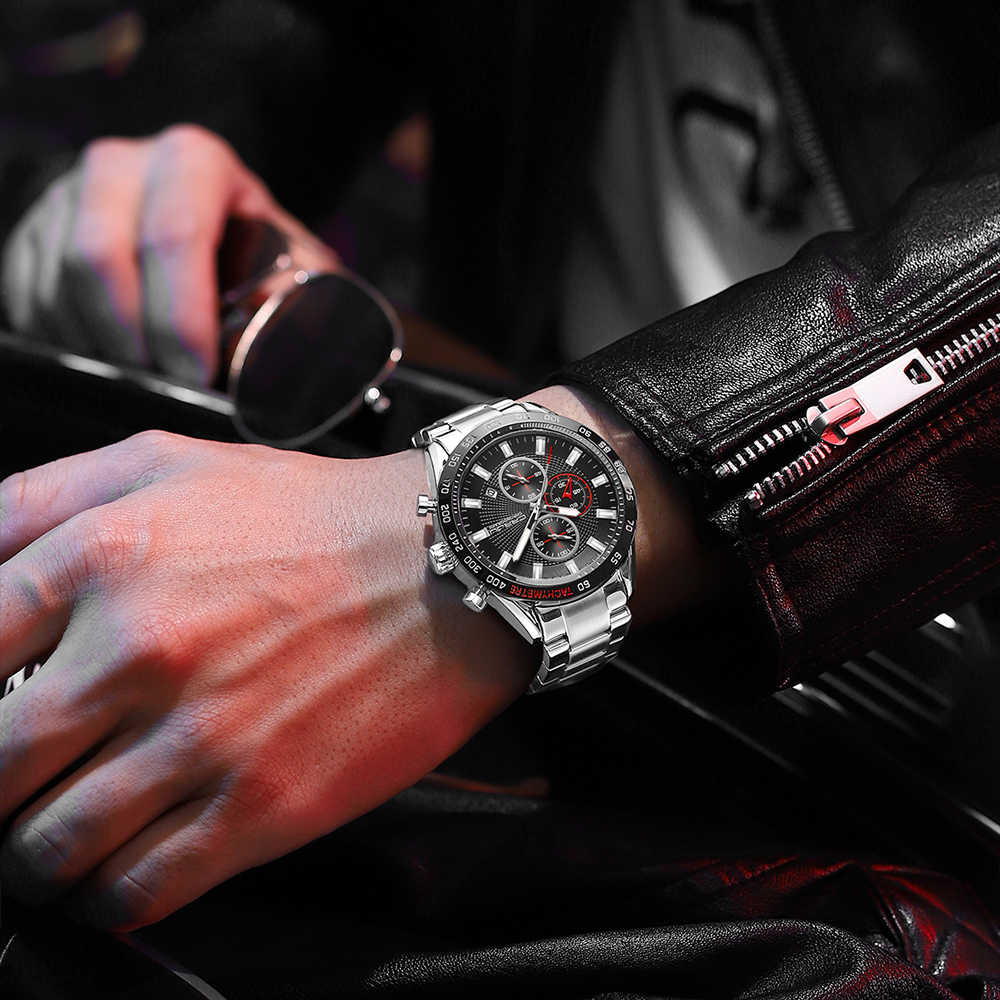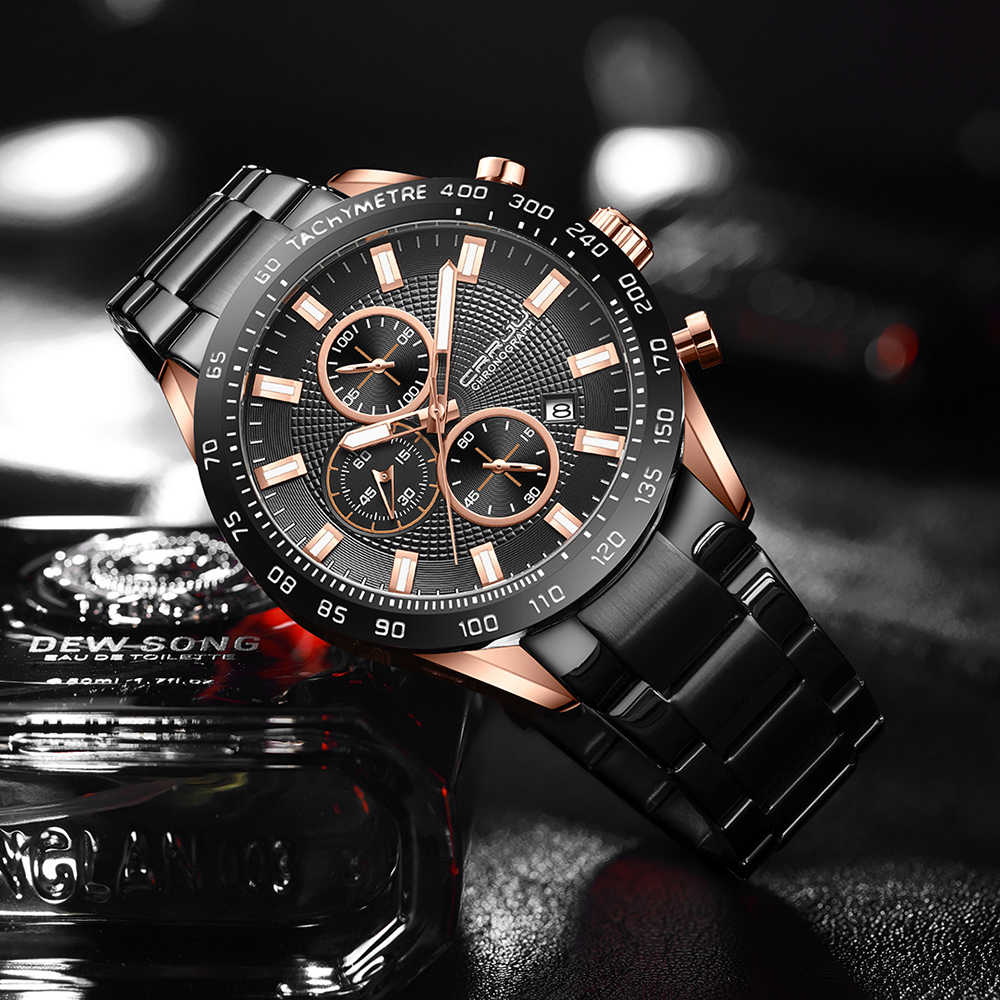 CRRJU 2306 Classic Silver Mens Quartz Watch Best Power Stainless Steel Band Water Resist Chronograph Vintage Casual Wrist Watch