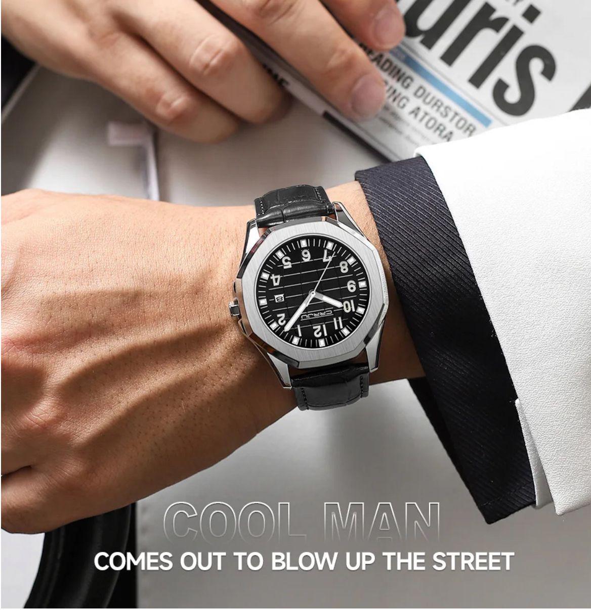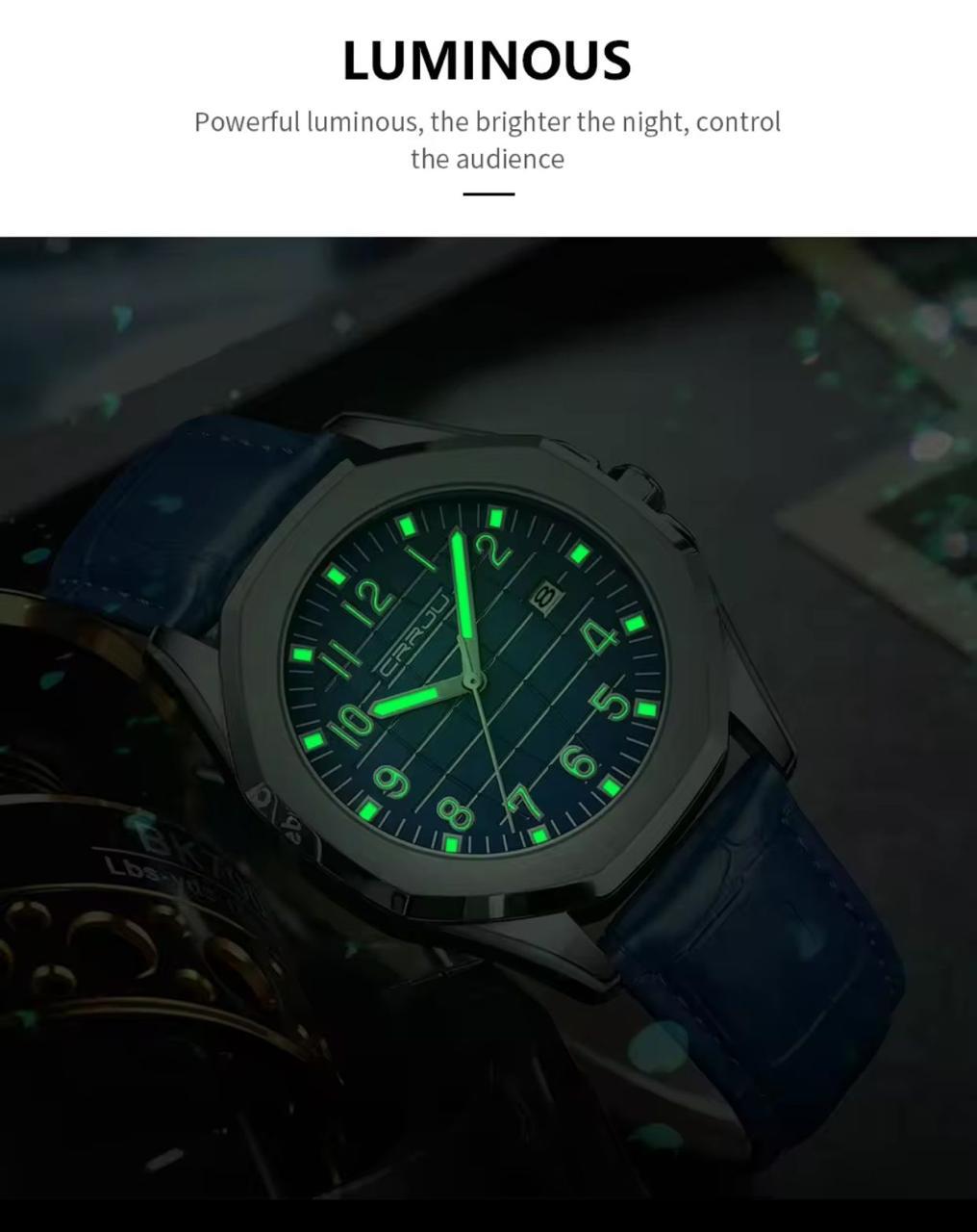 CRRJU 5022 Luxury Man Wristwatch Waterproof Luminous Date Auto Male For Men Watches Genuine Leather Quartz Men's Watch