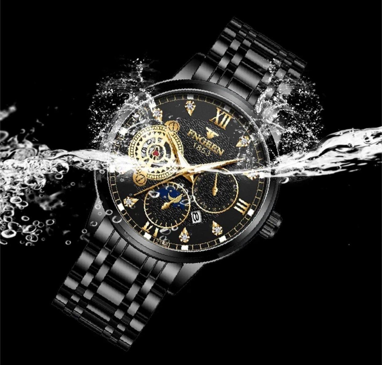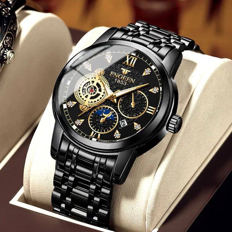 Fngeen 2166 Casual Fashion Stainless Steel Strap Men's Moon Phase Watch Waterproof Wrist Japan Quartz Watches