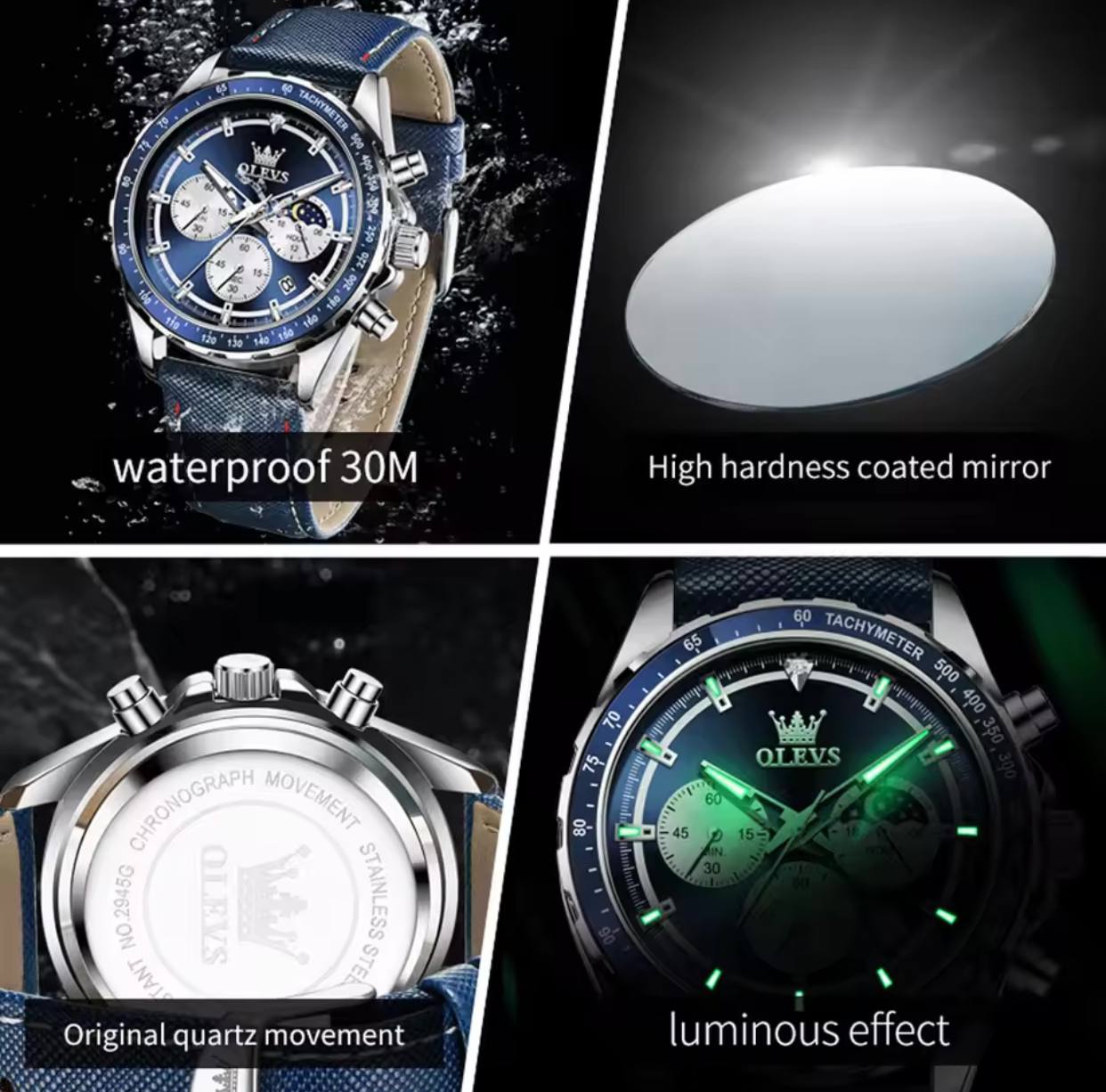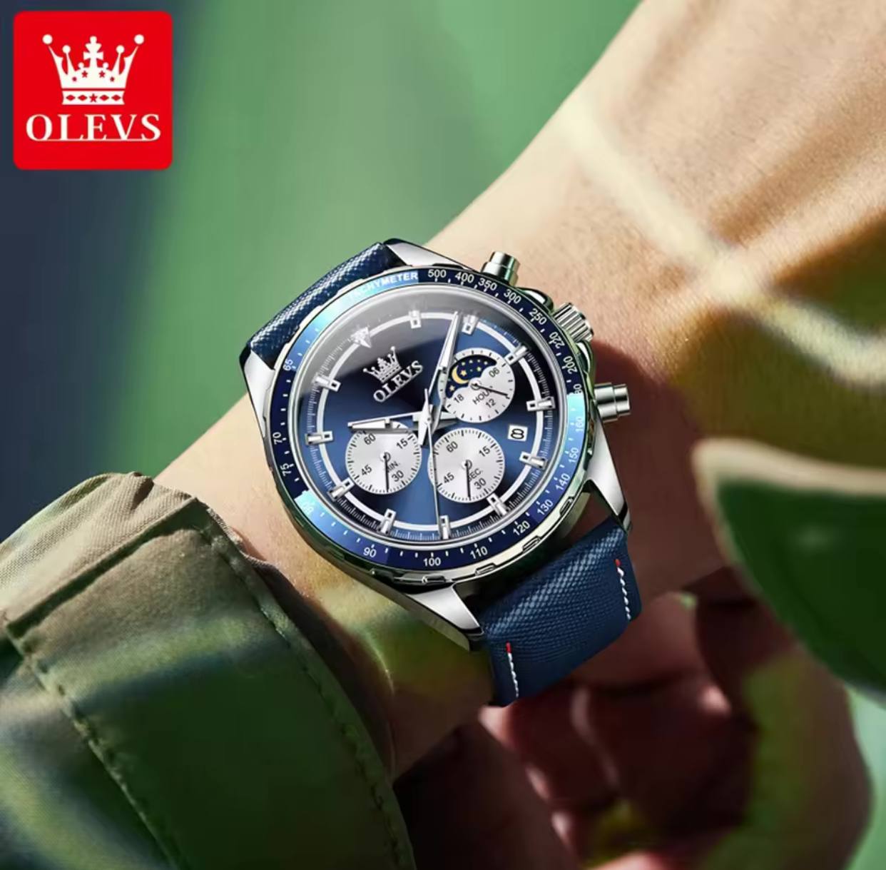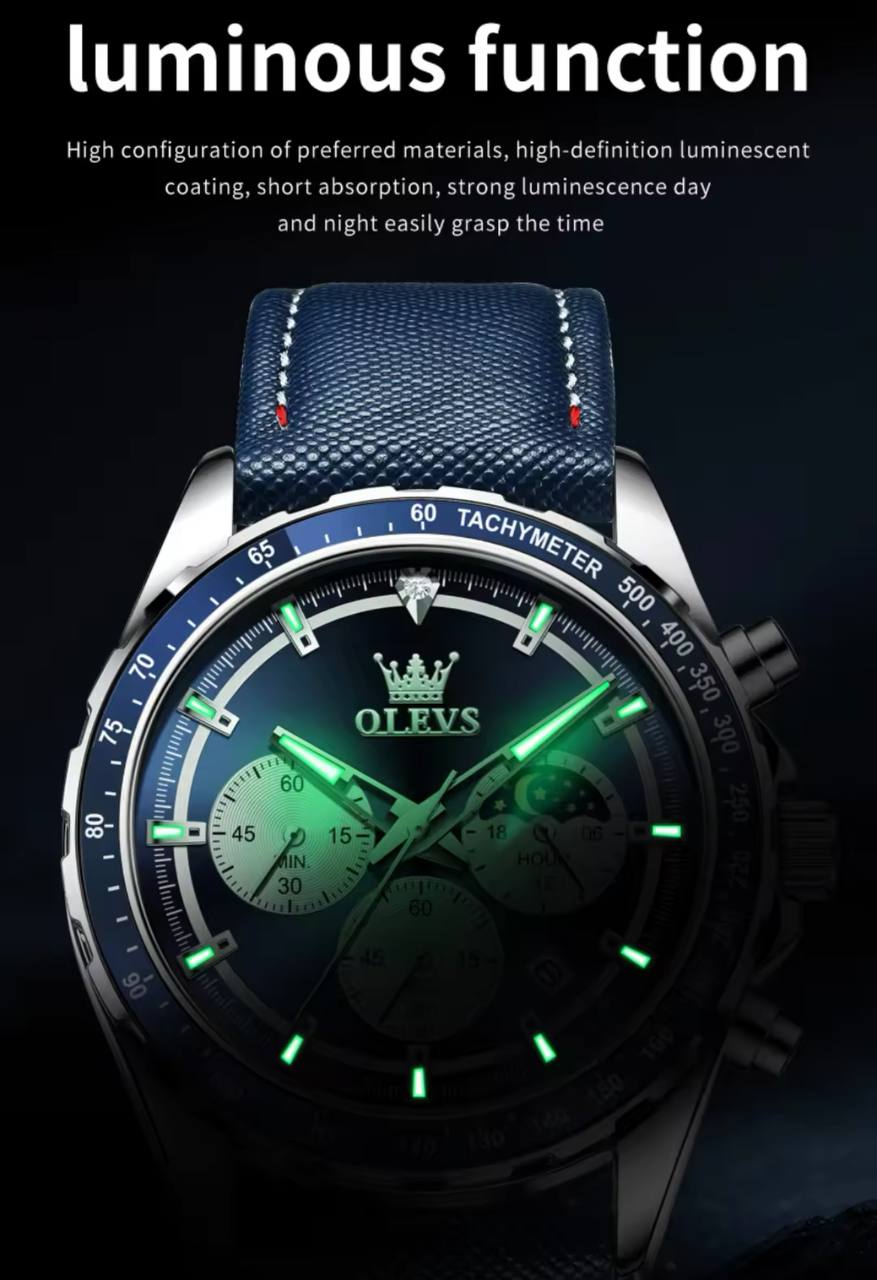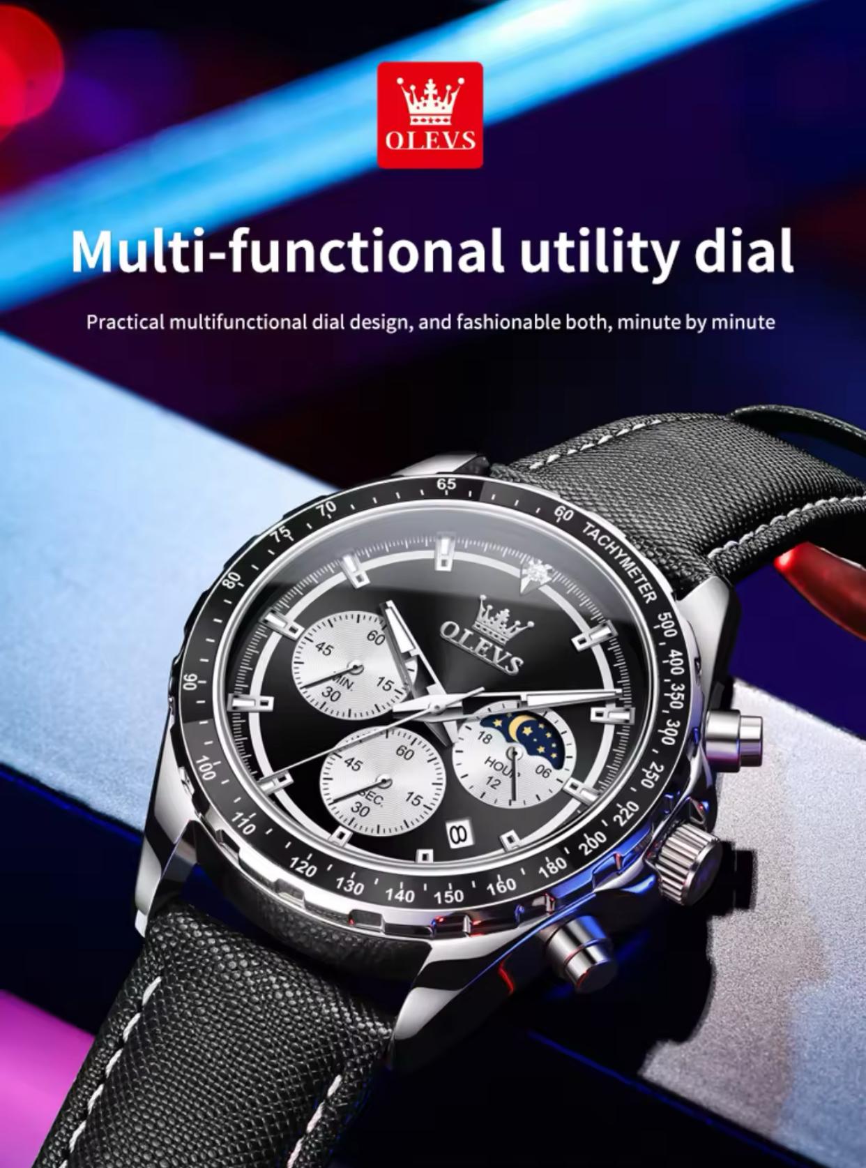 New Men's Business OLEVS 2945 Quartz 6-Pin Multifunctional Belt Watch Men's Wrist Watch