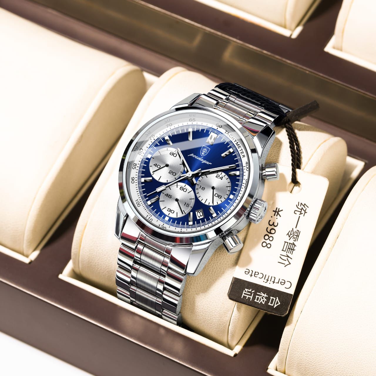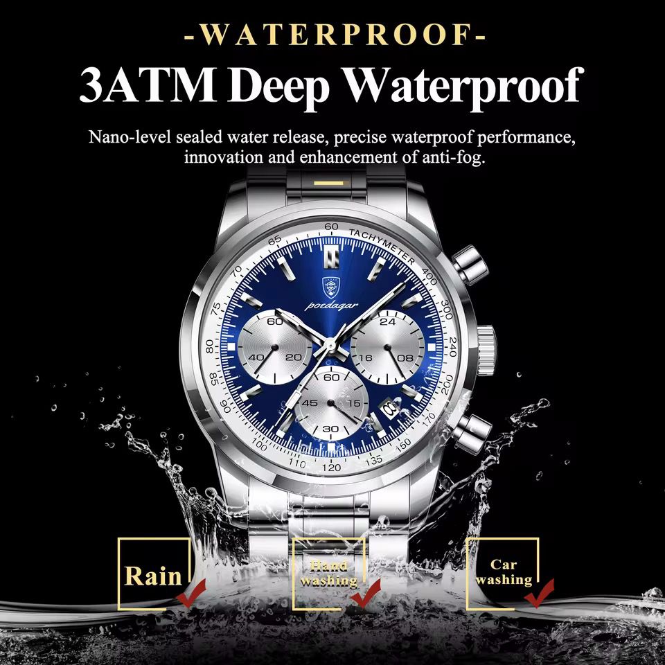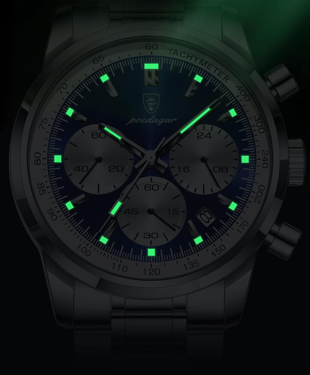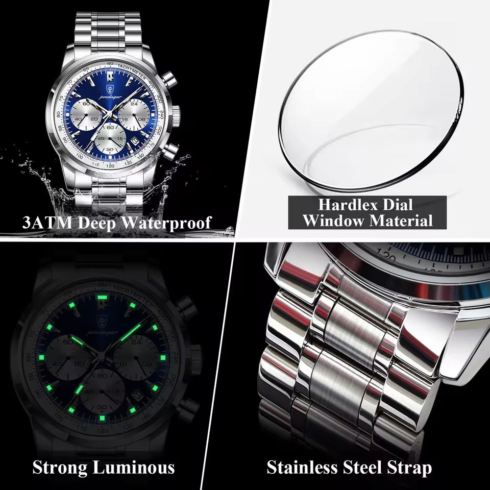 Luxury Stainless Steel Metallic strap Poedagar 921 Men's Watch Waterproof Luminous Chronograph Quartz Watches for Men