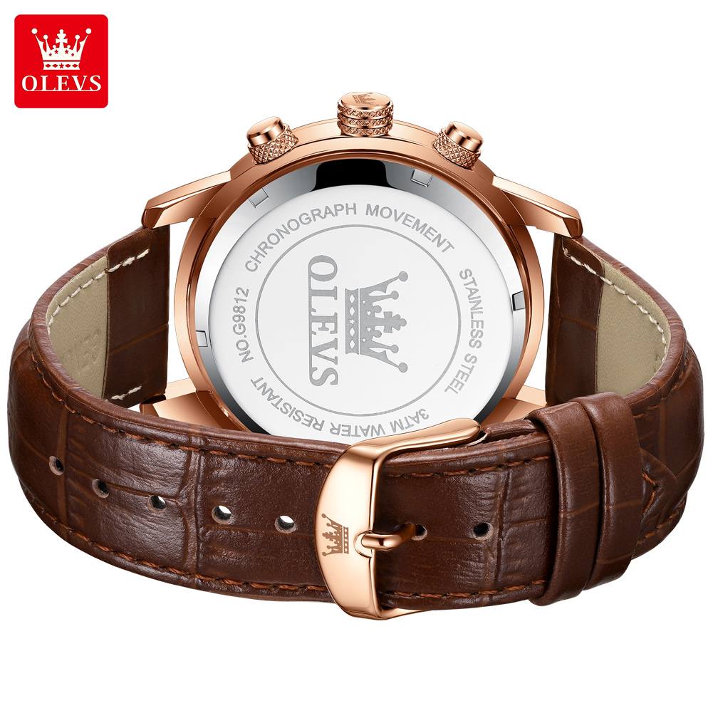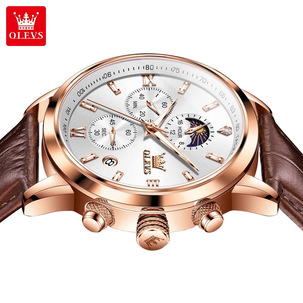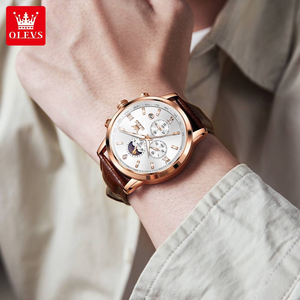 Wristwatches Genuine Leather Belt OLEVS 9812 Luminous Original Luxury Watches Men Waterproof Men's Quartz Moon Phase Sport Watch