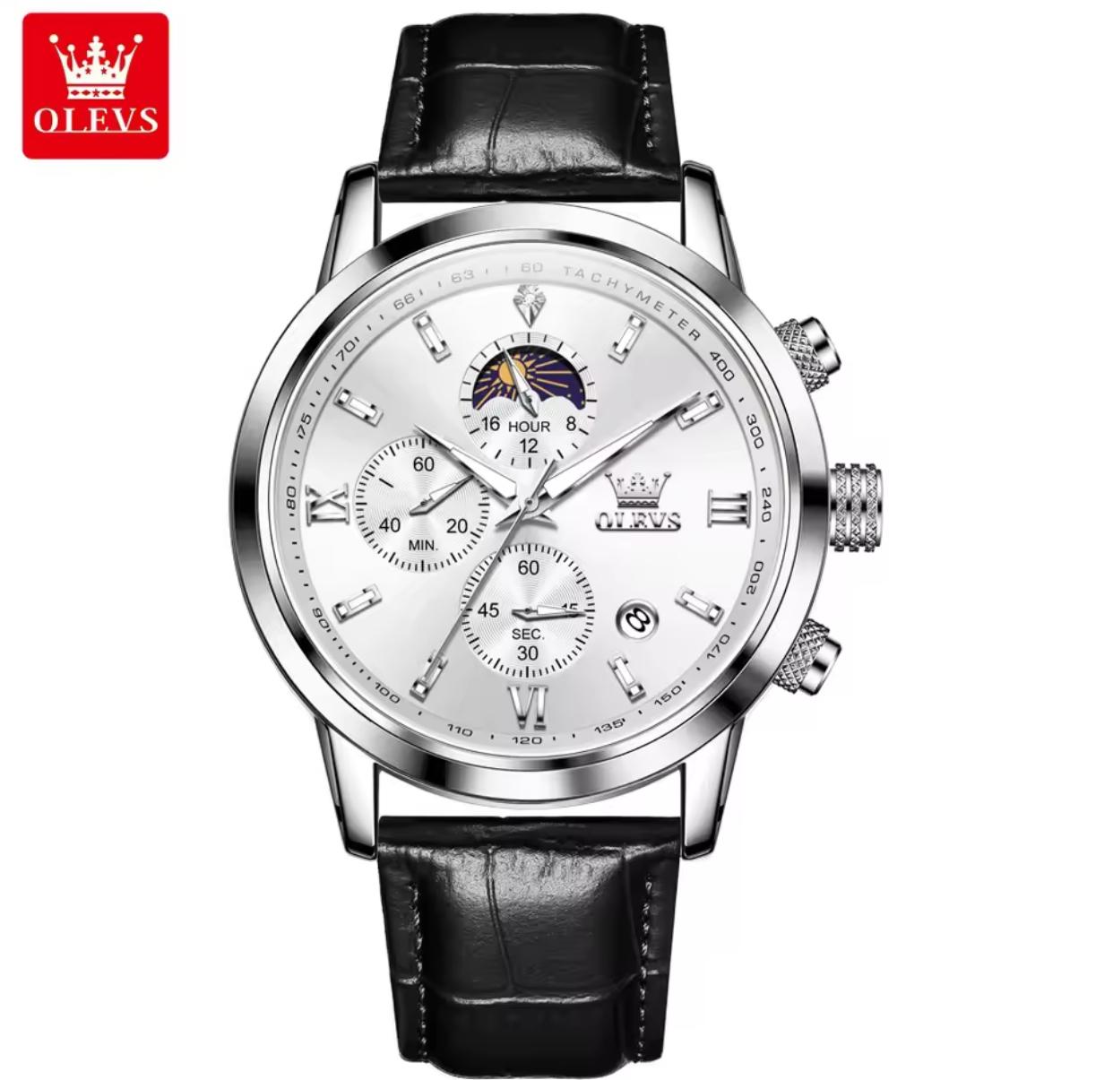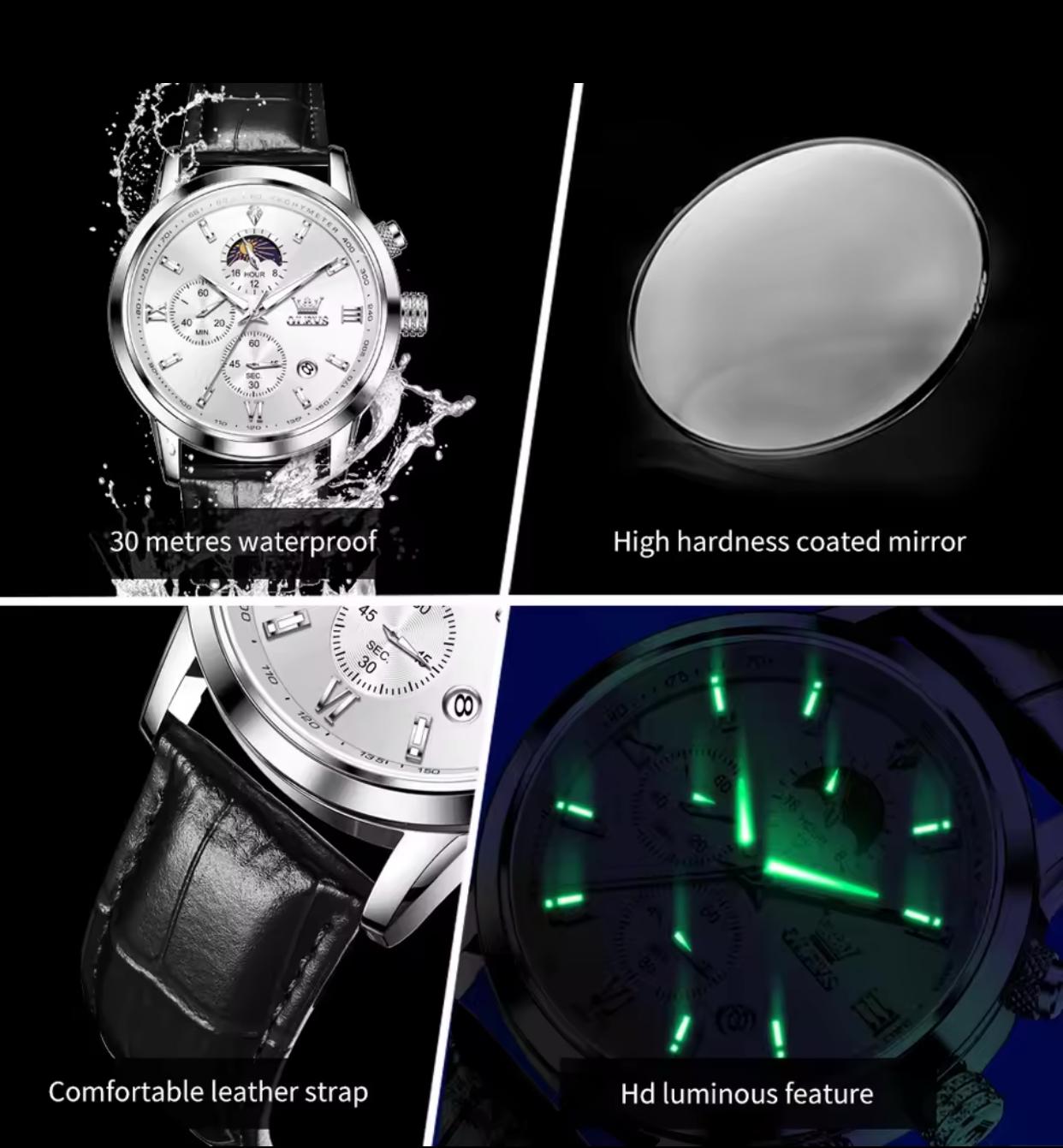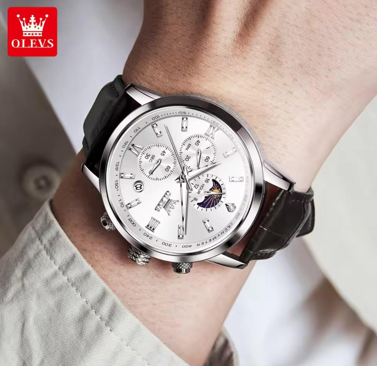 Wristwatches Genuine Leather Belt OLEVS 9812 Luminous Original Luxury Watches Men Waterproof Men's Quartz Moon Phase Sport Watch