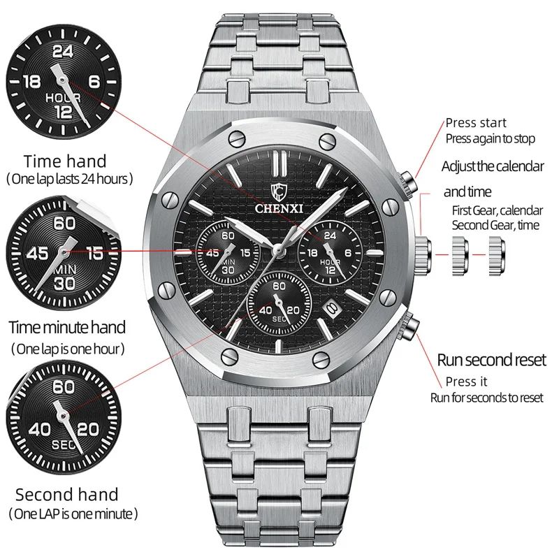 Fashionable CHENXI 948 cx-948 Business Top Brand Luxury Quartz Watch Men Stainless Steel Chronograph Waterproof Wristwatches