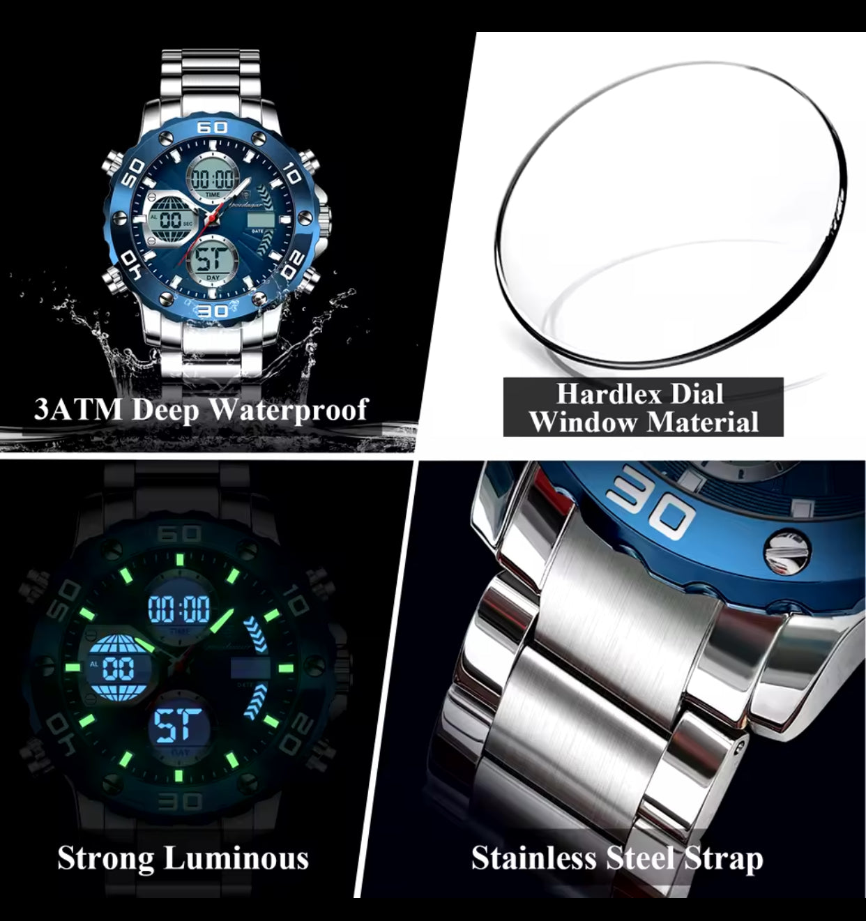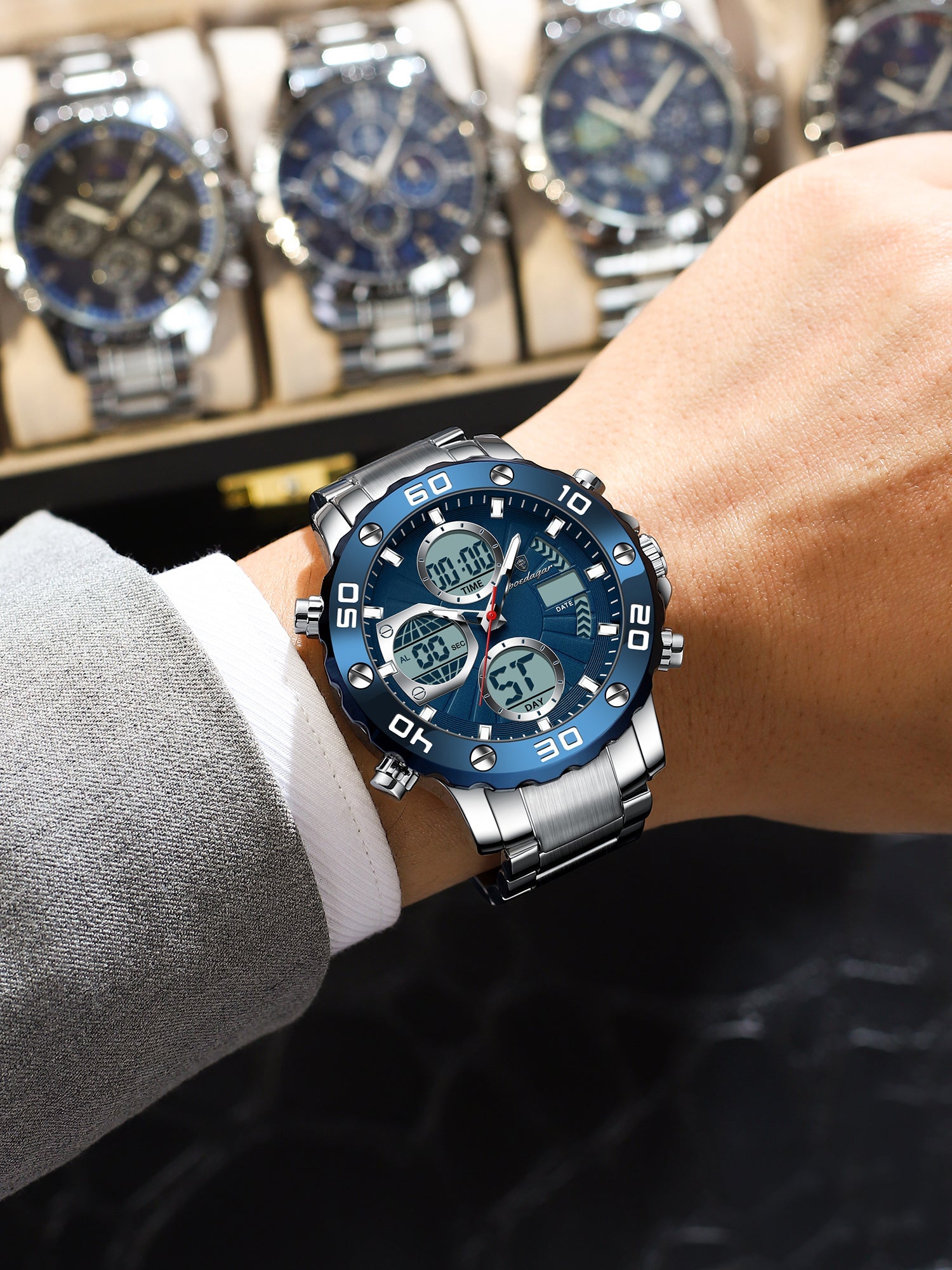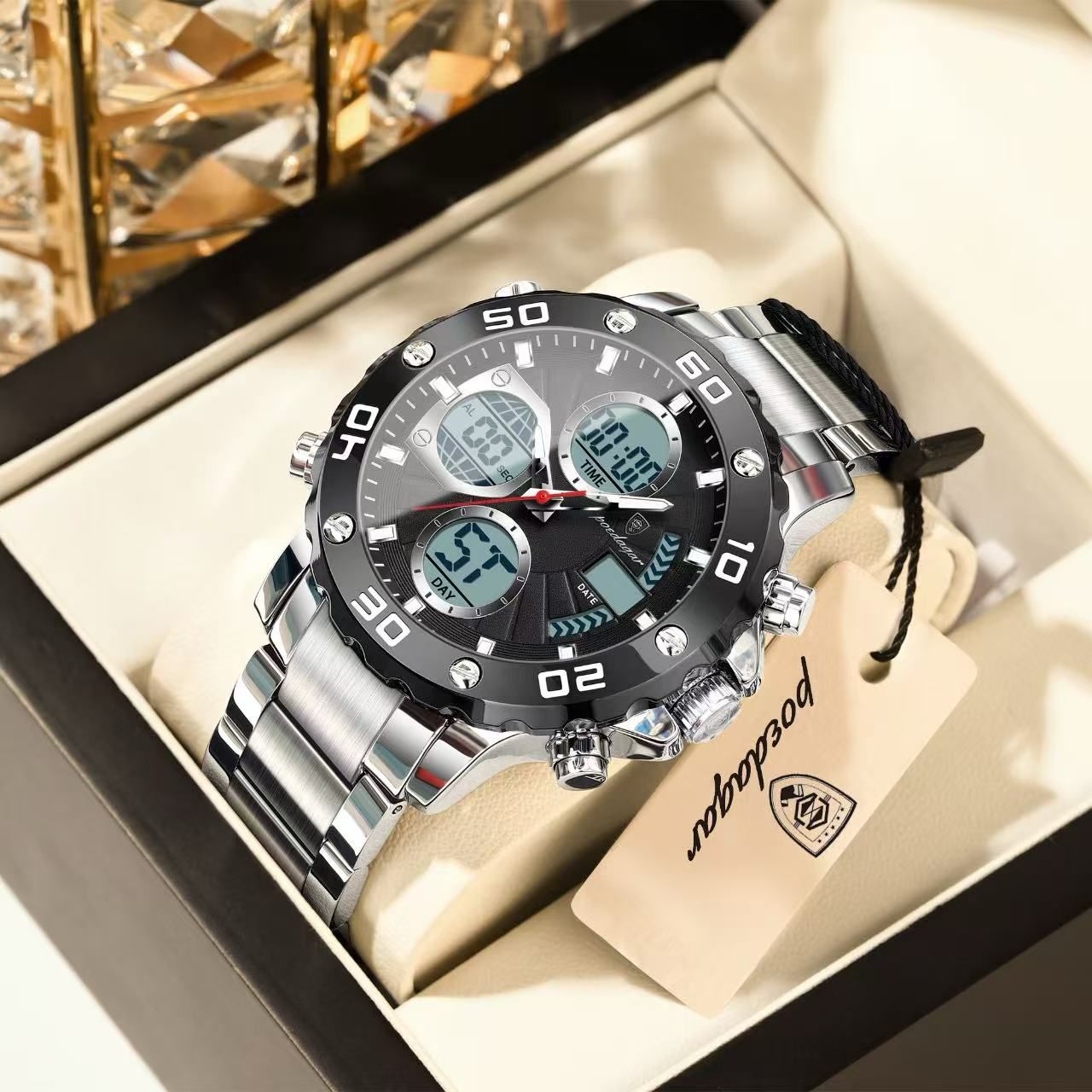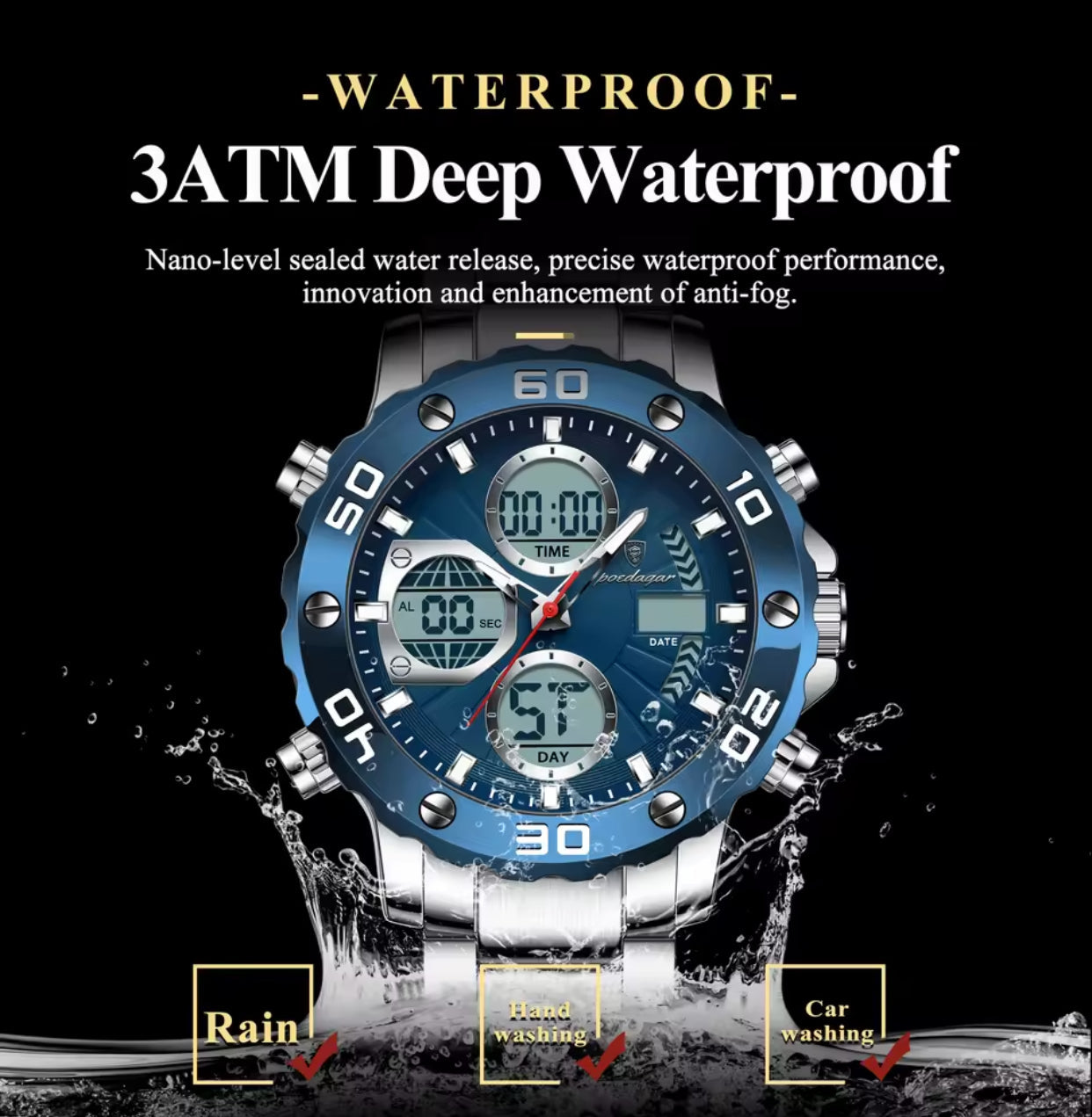 2025 NEW POEDAGAR E102 Wristwatch for Man LED Alarm Dual Time Display Digital Quartz Men Watch Electronic Waterproof