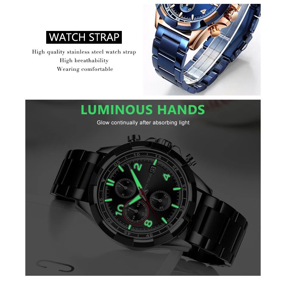 Mini Focus MF0198G Luxury Men's Wristwatch Waterproof Solid Stainless Steel Chain Chrono Watch
