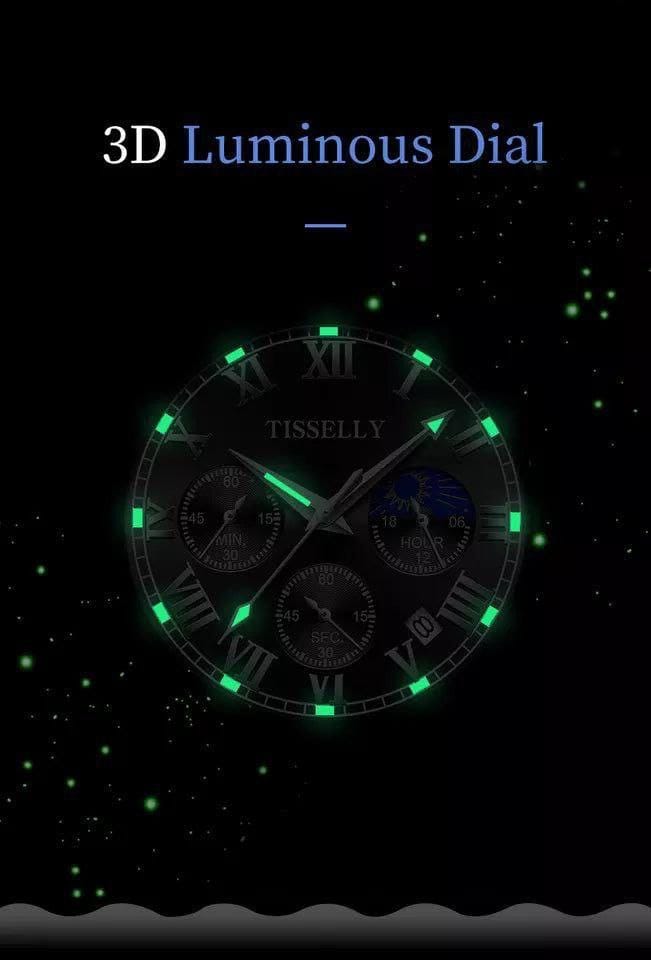 Hot TISSELLY 6601 Gold Diamond Steel Moon Multi-function Quartz Mens Watches Top Brand Luxury Watch for Men 2024