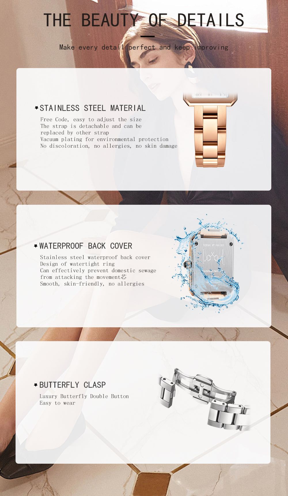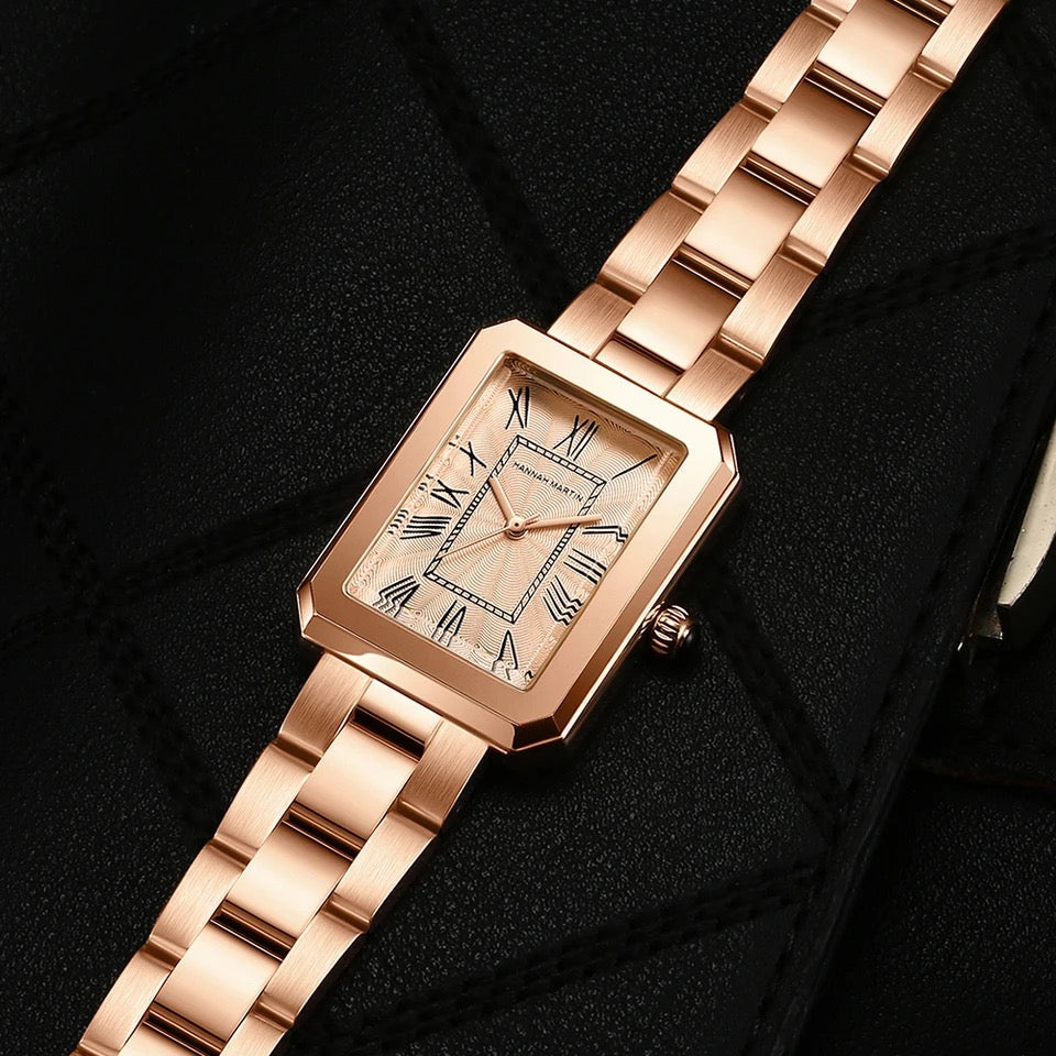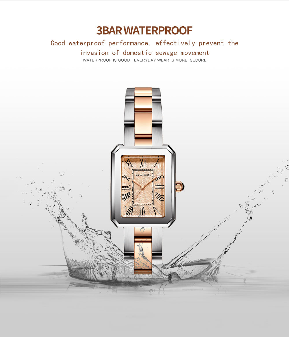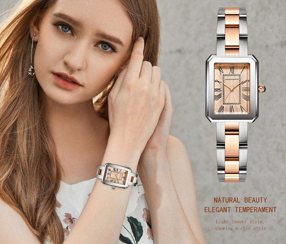 Hannah 2023 Women's brand watch Square retro Roman numerals quartz watch steel belt bow buckle watch HM-1301