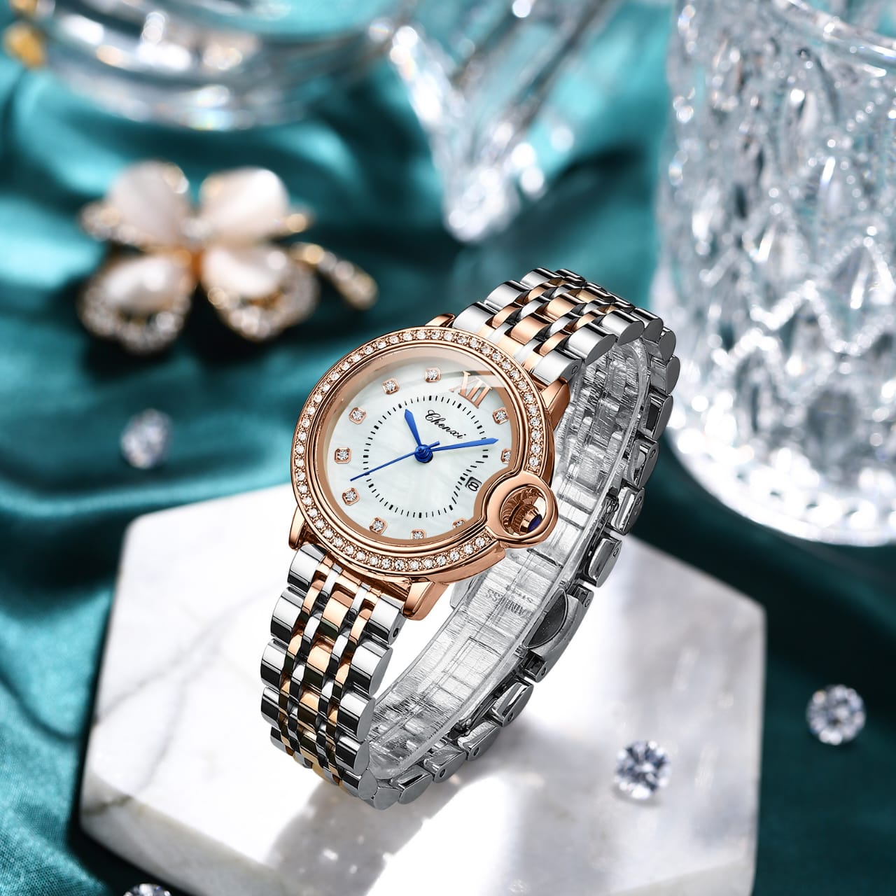 Top Brand Women CHENXI 338 Watch Waterproof Rose Gold Quartz Clock Ladies Stainless Steel Dress Wrist