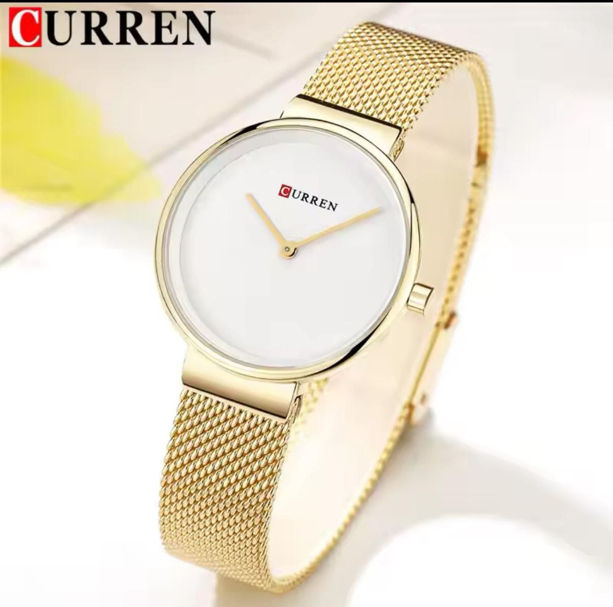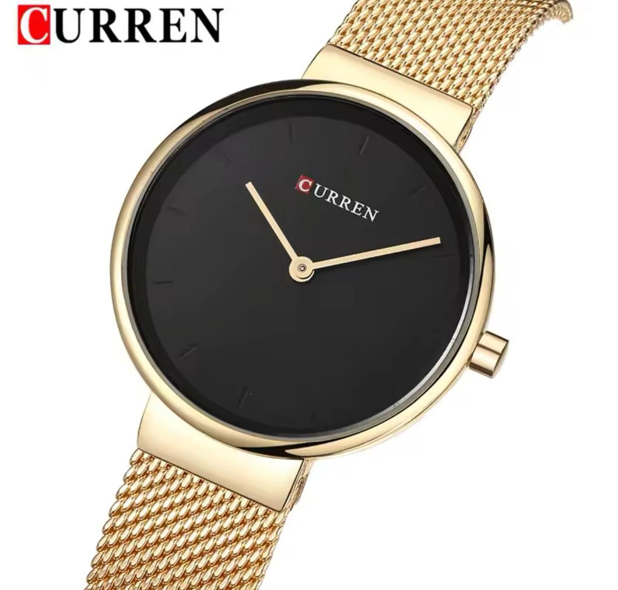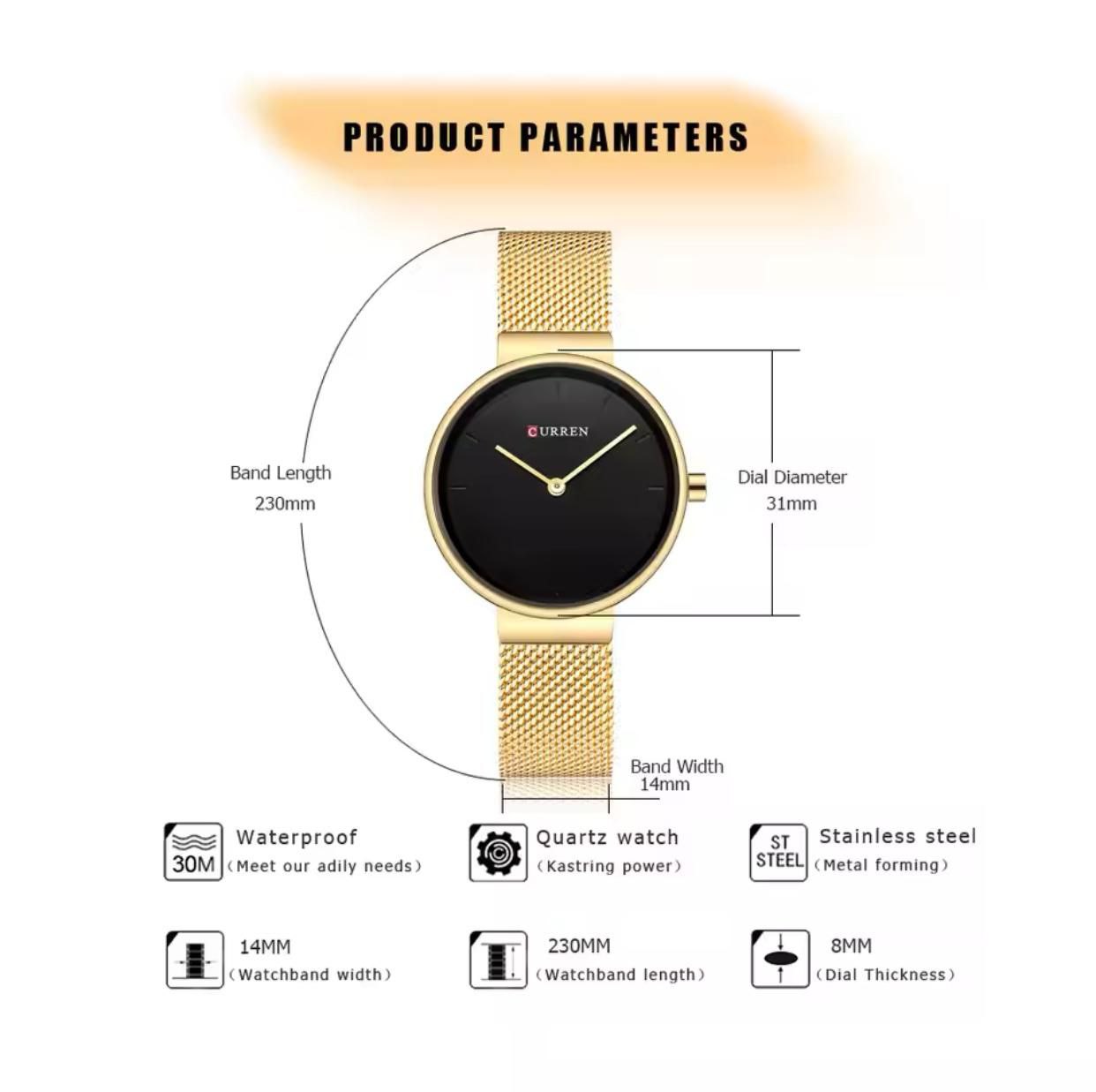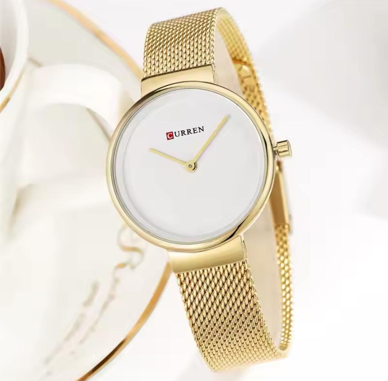 CURREN 9016 Golden Female Quartz Watch Hot Sale Mesh Band Waterproof Ultra Slim Minimalist Business Ladies Watch