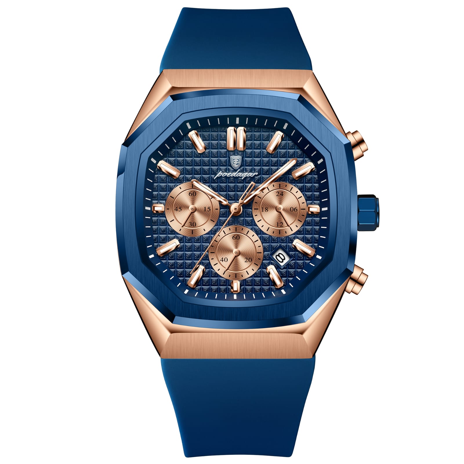 Luxury Chronograph Watch for Men Poedagar P993 Silicone Rubber Strap Luminous Date Week Sport Fashion Casual Wrist Watches