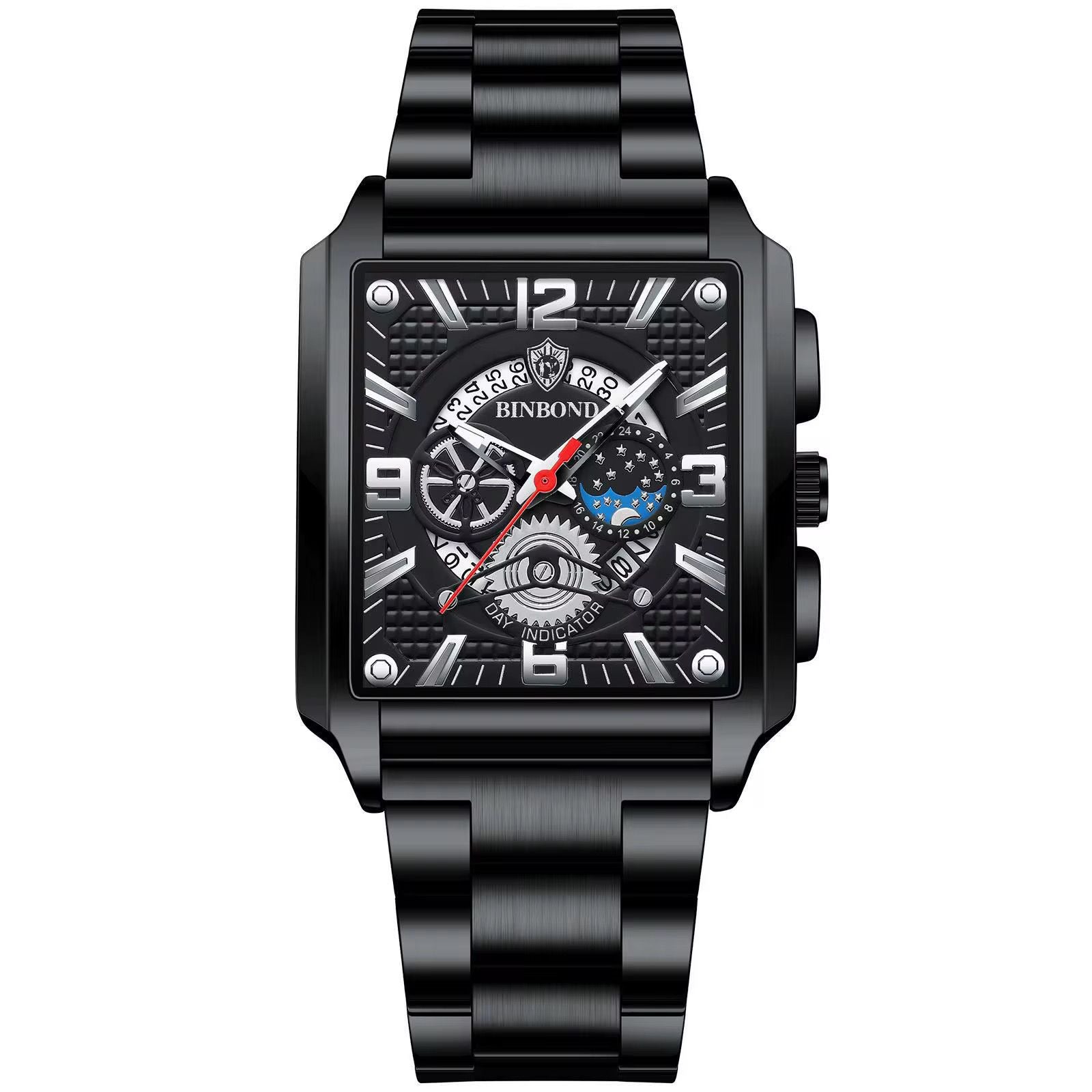 Luxury Retro Square Binbond 6575 Watch Waterproof Luminous Calendar Quartz Watches Stainless Steel Men's Watch
