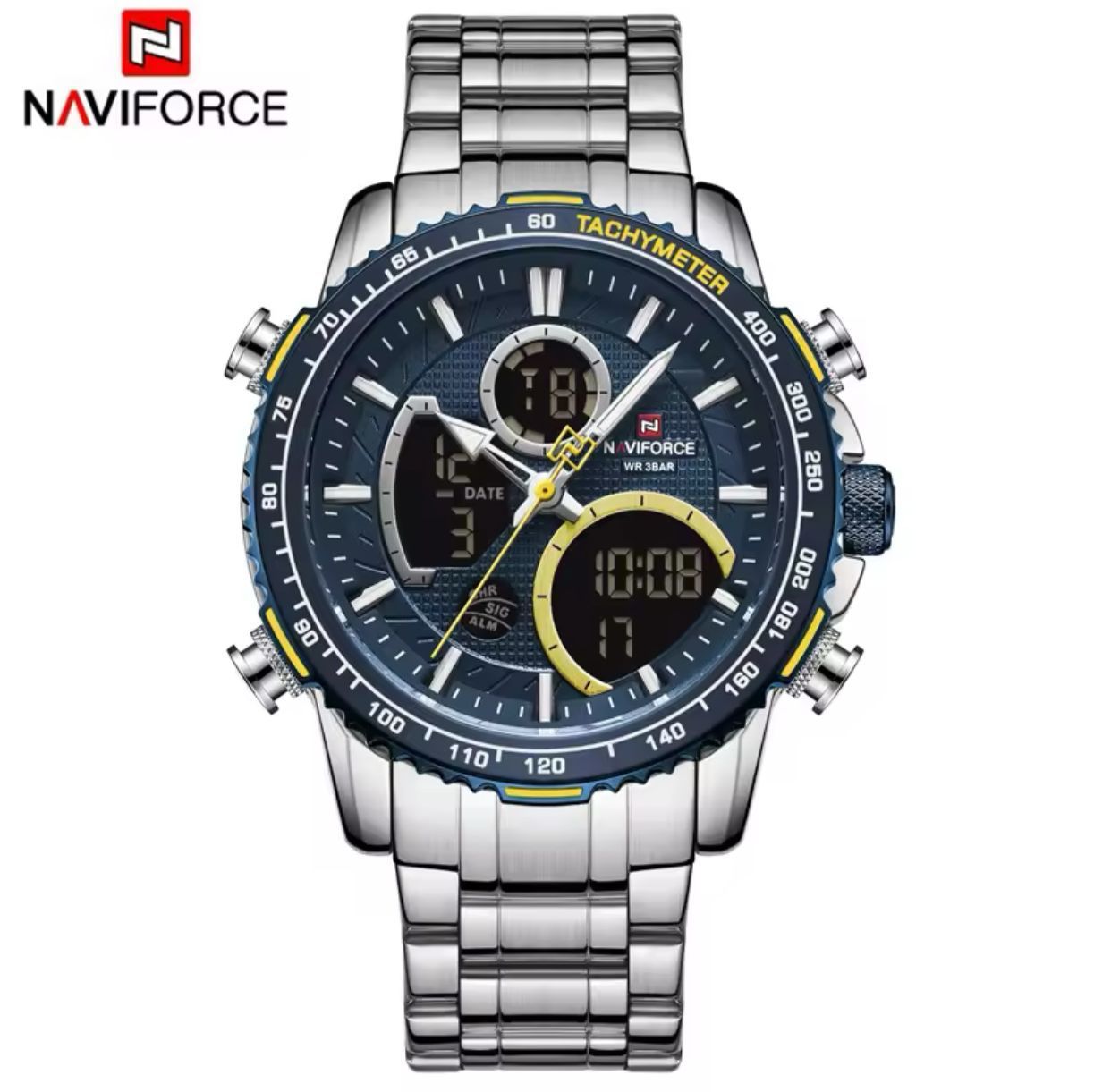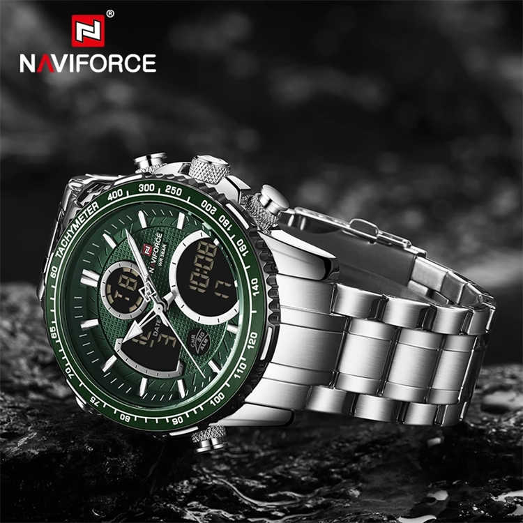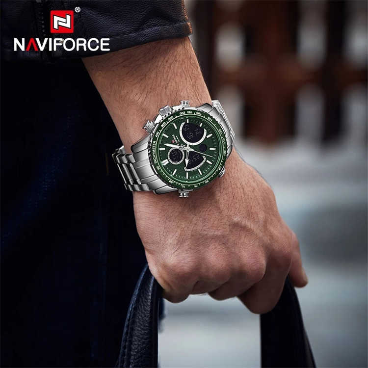 NAVIFORCE 9182 Fashion Business Watches for Mens Luminous Led Digital Dual Time Chronograph Waterproof Watches Male