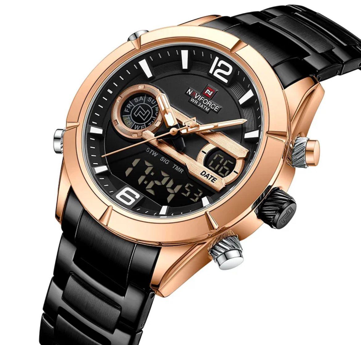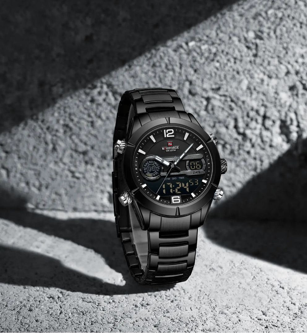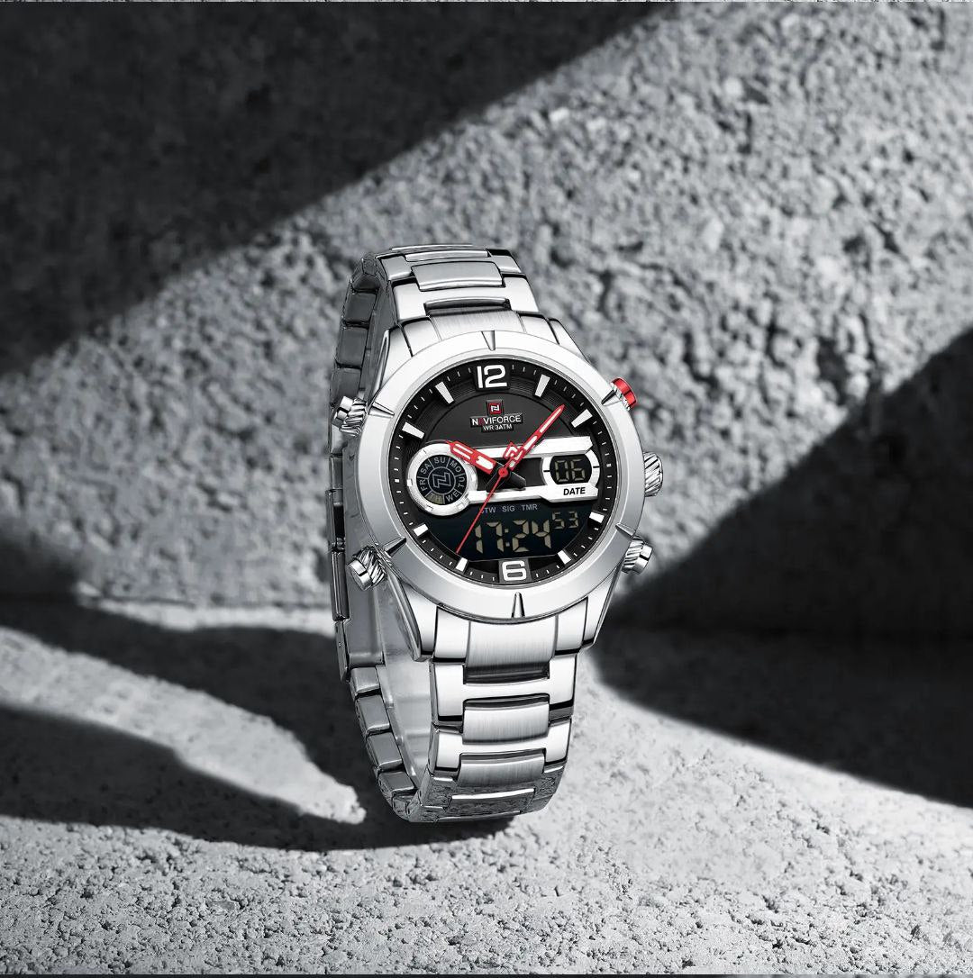New 2025 Hot Selling Stylish NAVIFORCE 9232 Top Quality Newest Dual time Design Best Selling On Sale Men Quartz Watch Stainless Steel Band
