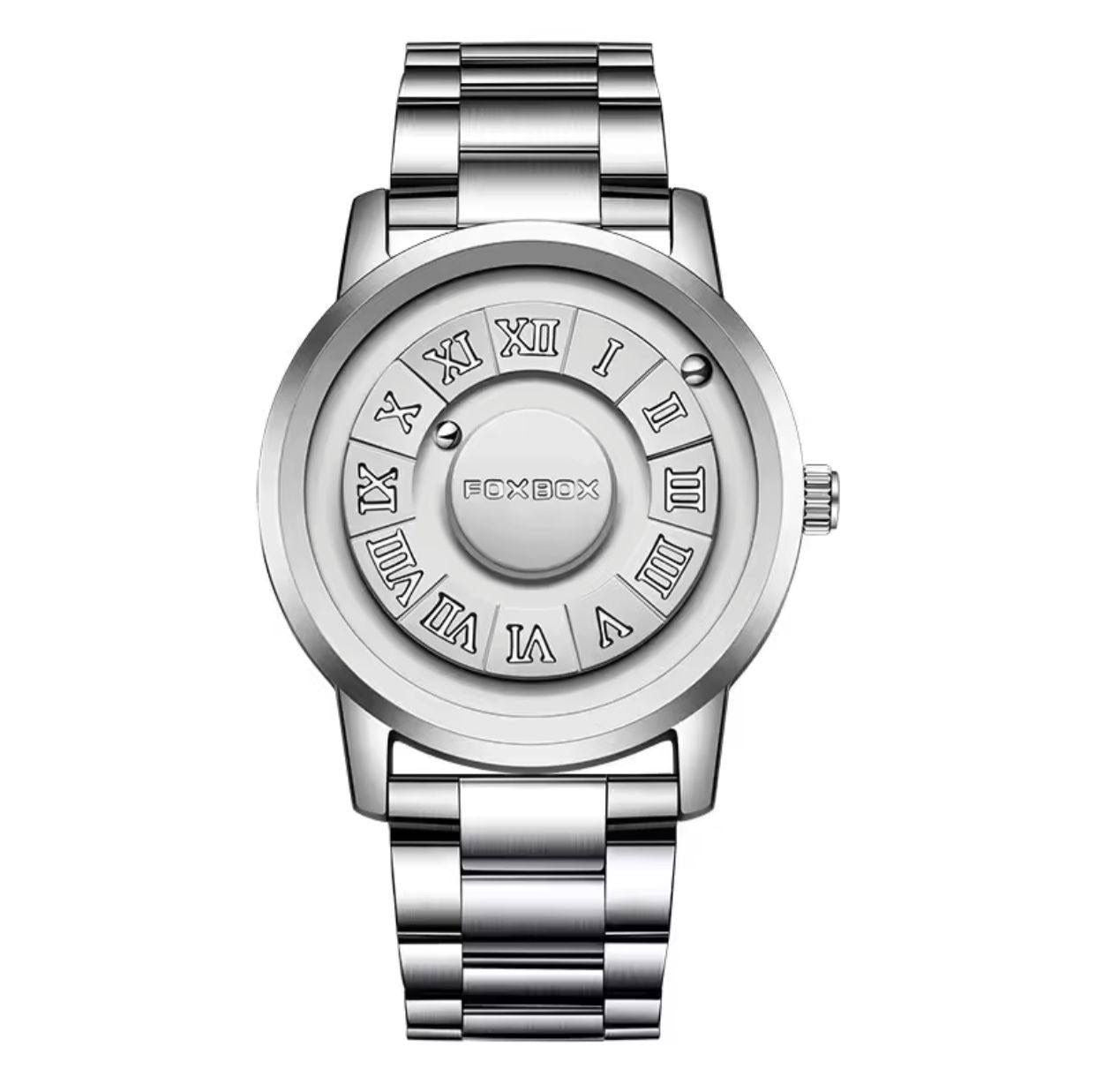 New Magnetic Ball Watch Mens Water FOXBOX 0047 proof Leather Quartz Wristwatch Skeleton 42MM Dial Rolling Ball Pointer Men Clock
