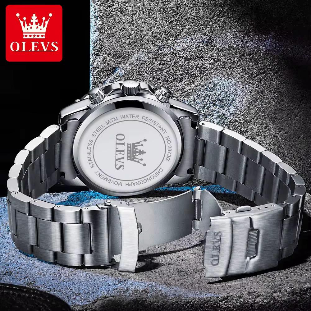 OLEVS 2873 Watches Mens Luxury Clock Casual Stainless Steel Wristwatch Sport Waterproof Quartz Chronograph