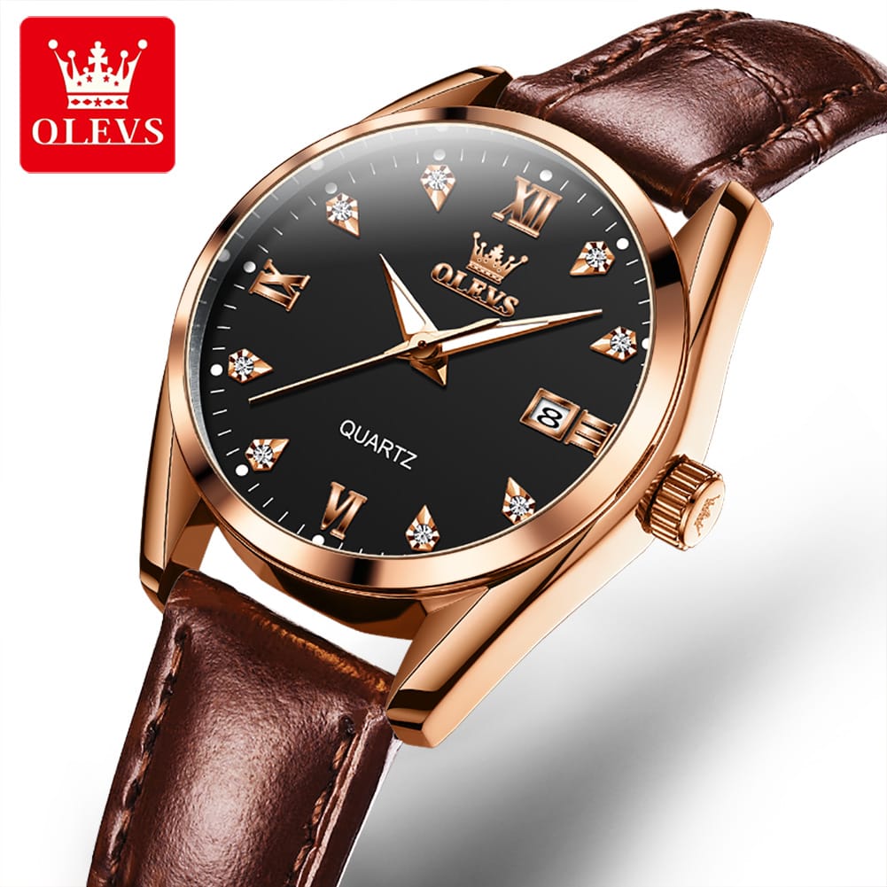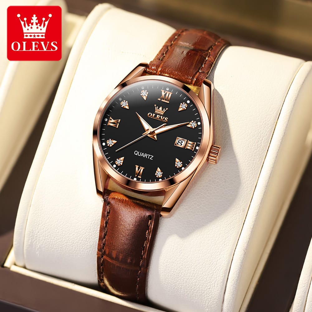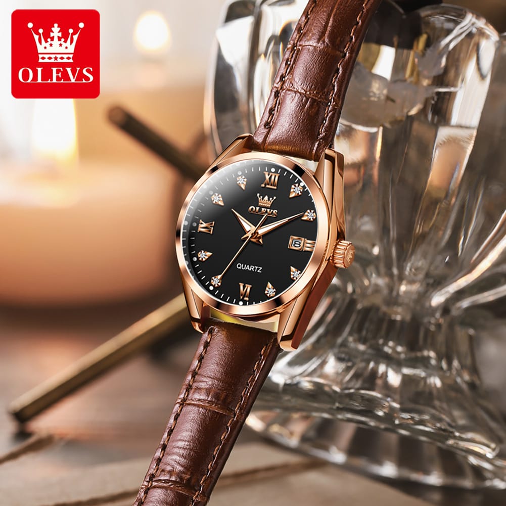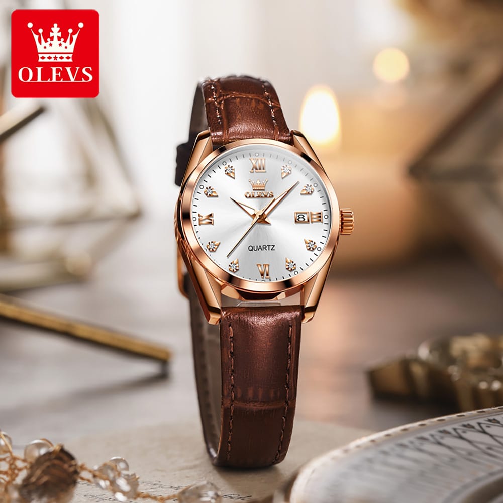 OLEVS 5522 Watch for Women Date Calendar Simple Dial Luxury Leather Strap Waterproof Luminous Elegant Women's Wristwatch