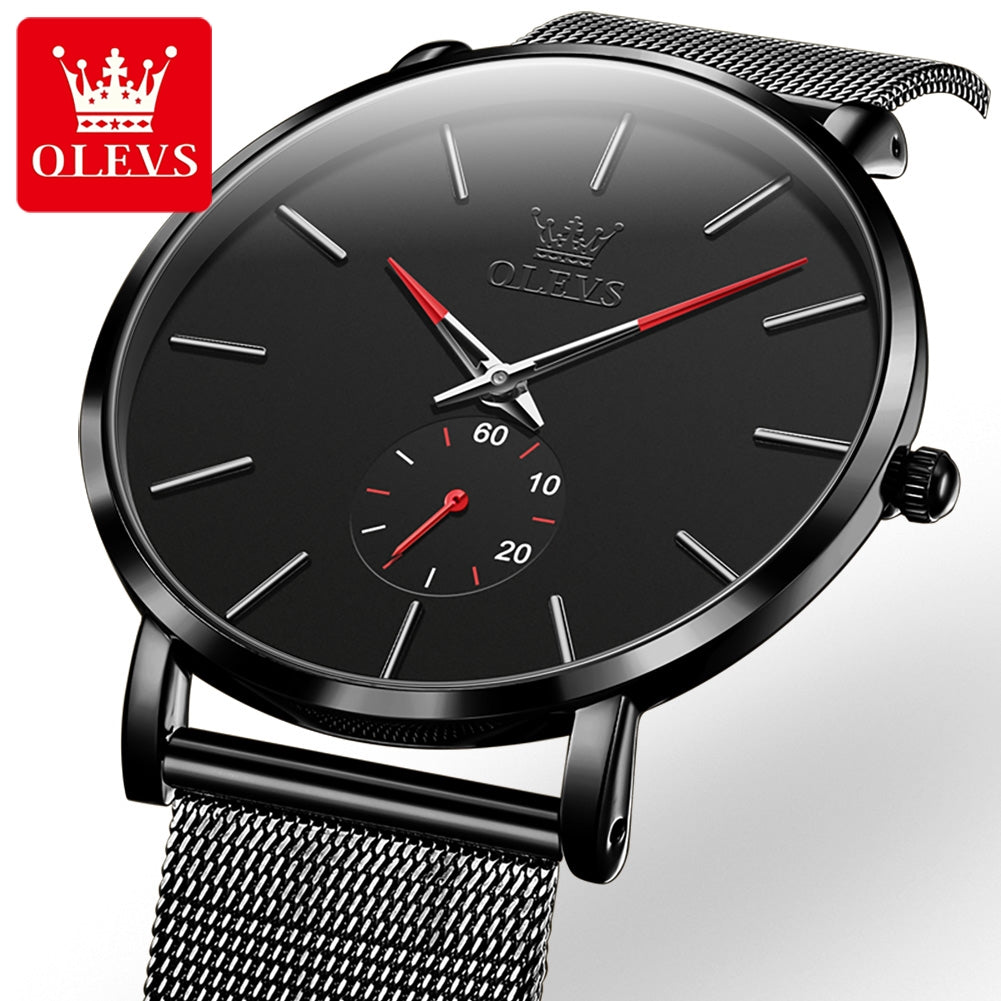 OLEVS 9954 Stainless Steel Mesh Strip Ultra Thin Watches Men Classic Quartz Watches Luxury Date Men's Wrist Watch