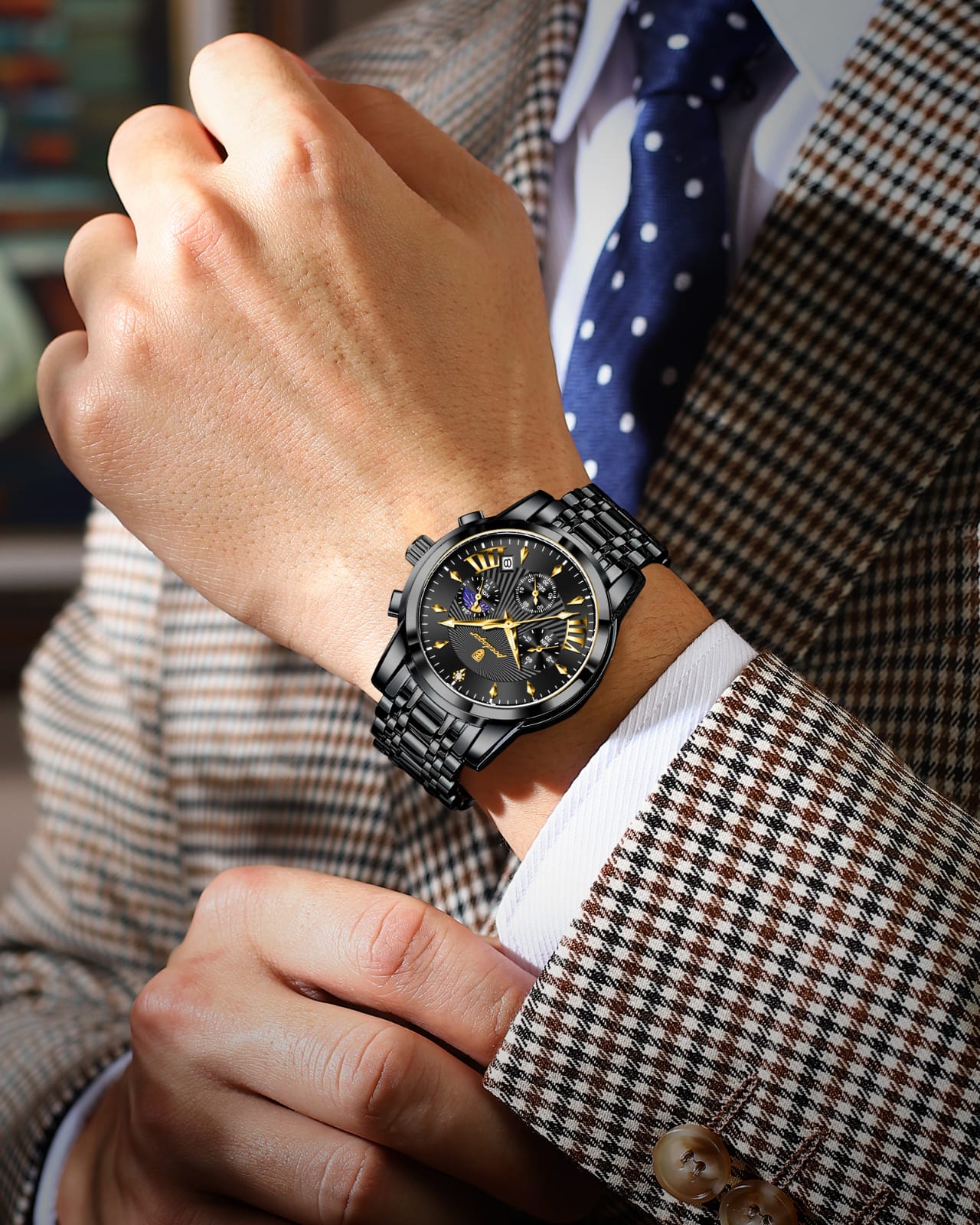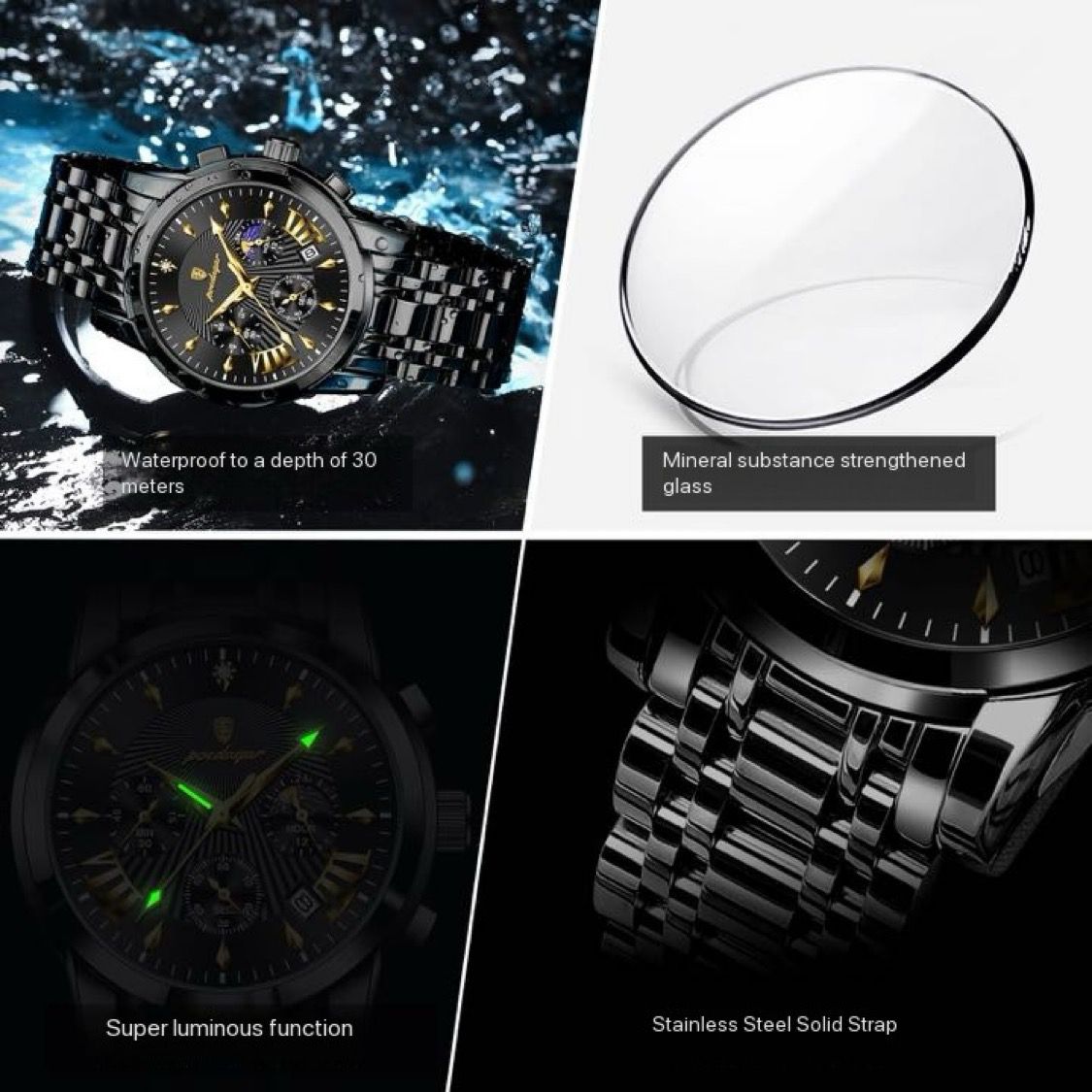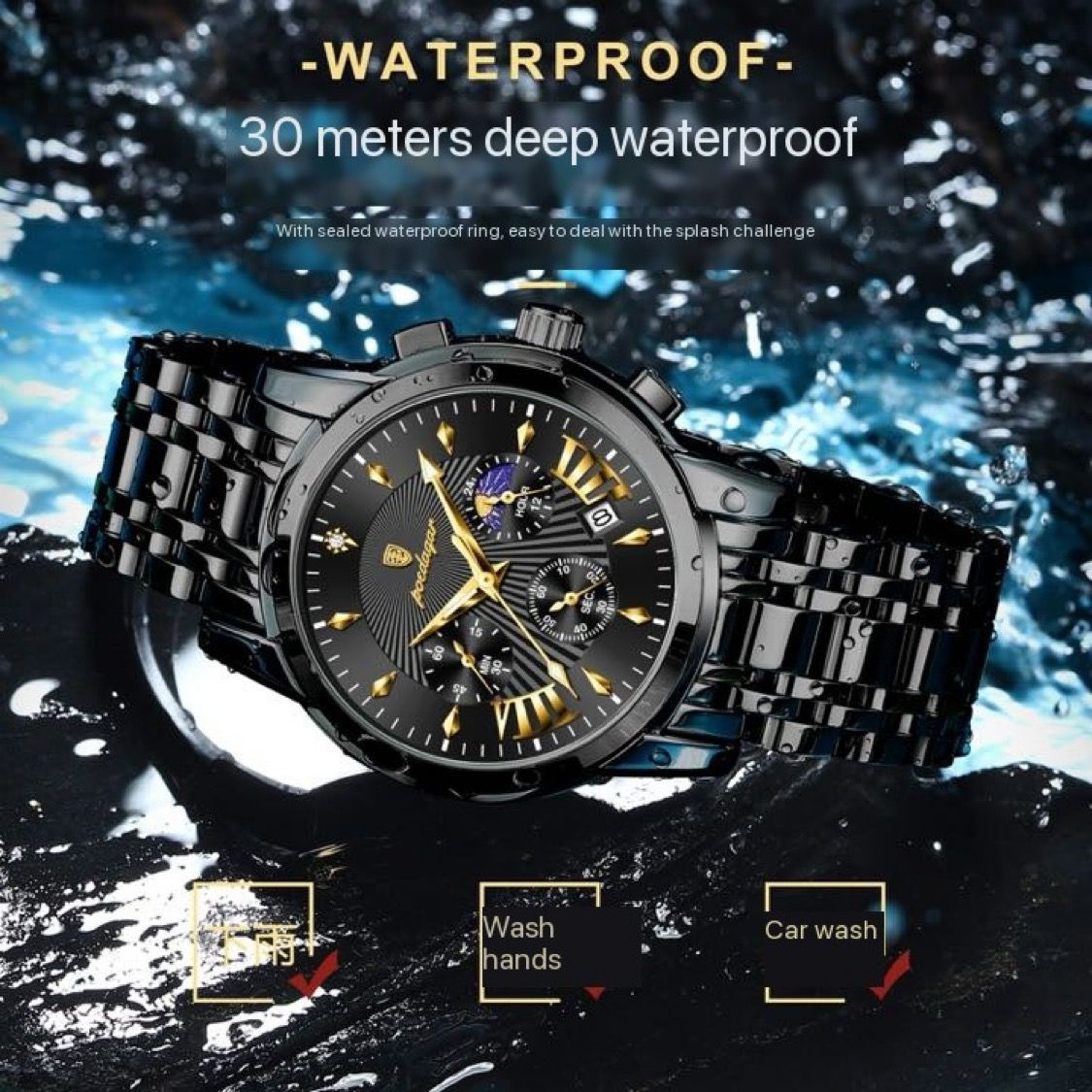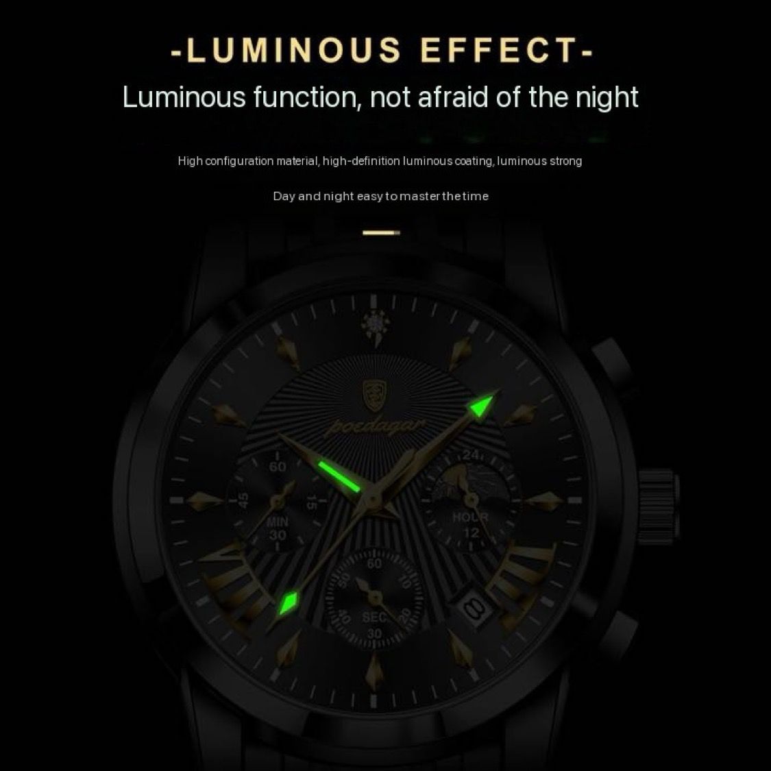 Auto Date, chronograph, Moon Phase, Waterproof, Luminous, Luminous Hands, Small three needle