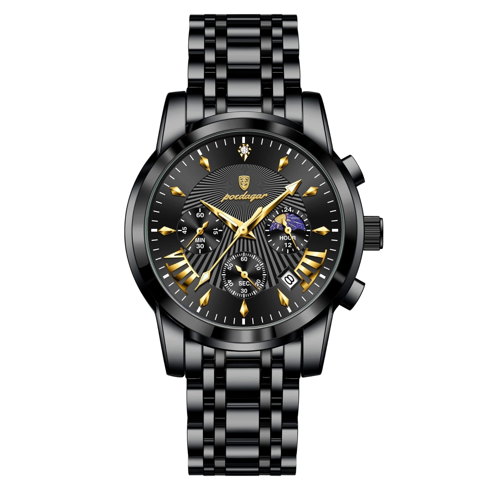 POEDAGAR 813 Top Quality Business Wristwatch Luxury Men Watch Stainless Steel Luminous Waterproof Date Auto Sport Wrist Watches