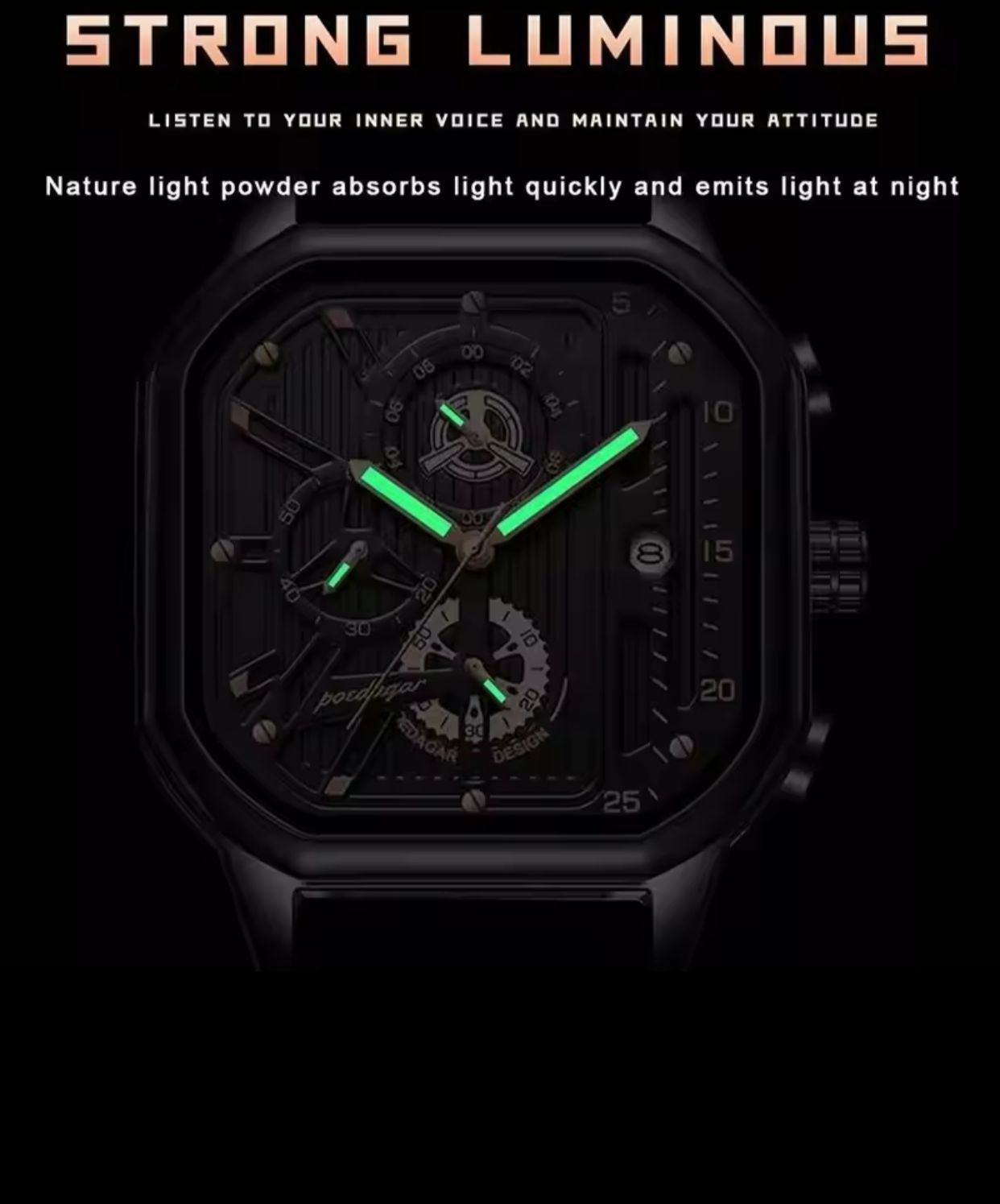 POEDAGAR 628 Top Brand Casual Watch Men Fashion Waterproof Luminous Sport Clock Men's Square Quartz Wristwatches