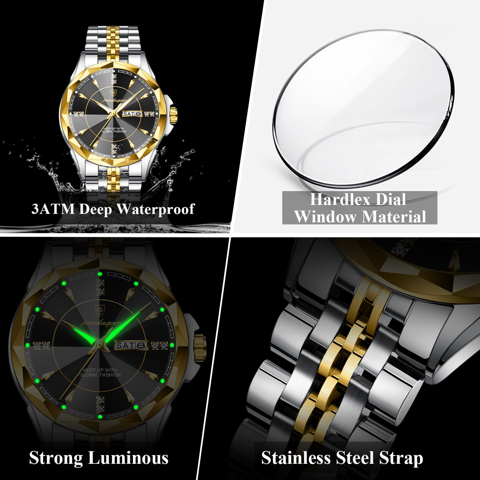 POEDAGAR 674 New Arrival Luminous Stainless Steel Watch Waterproof Date Week Luxury Men's Quartz Wristwatch