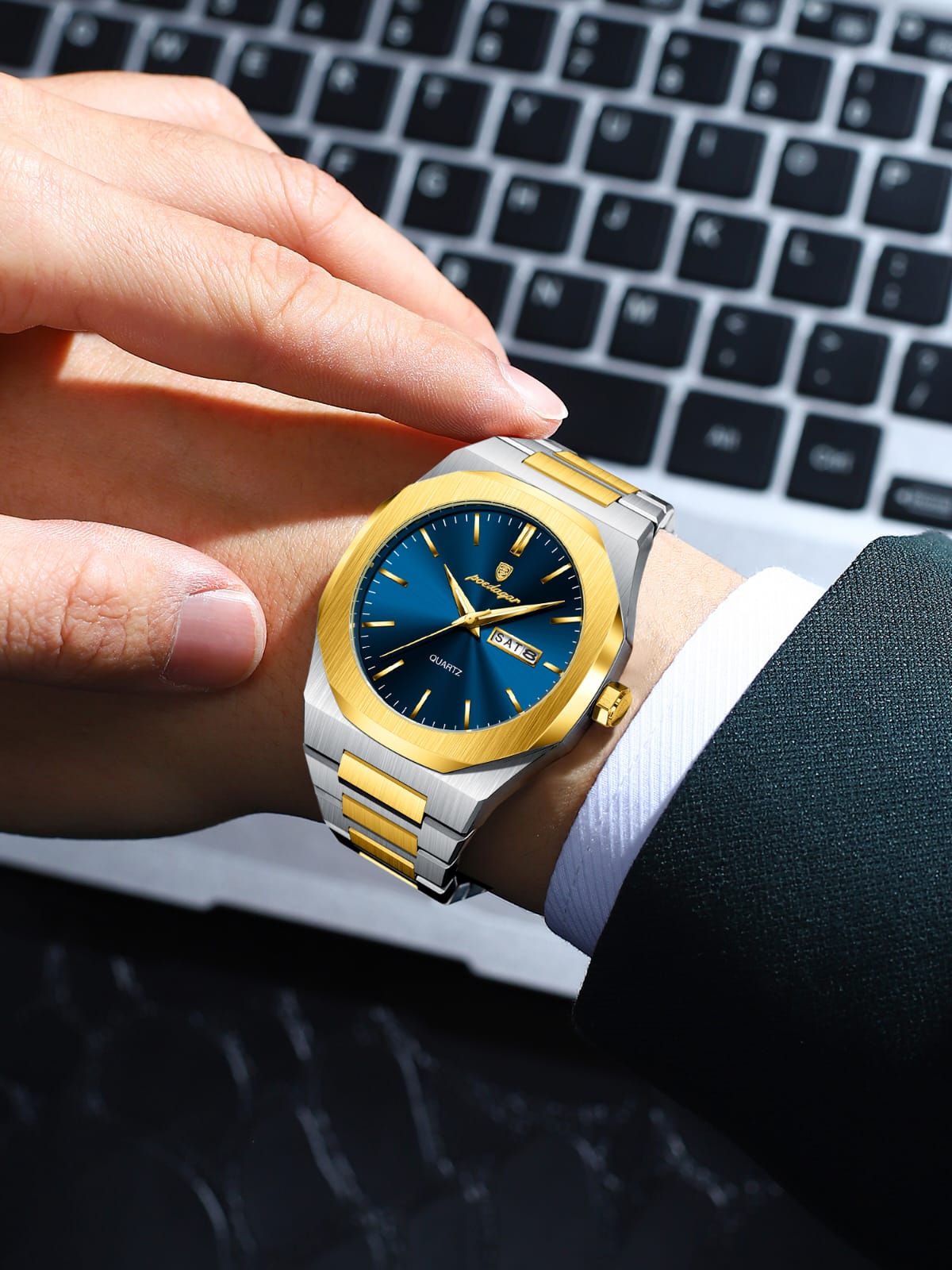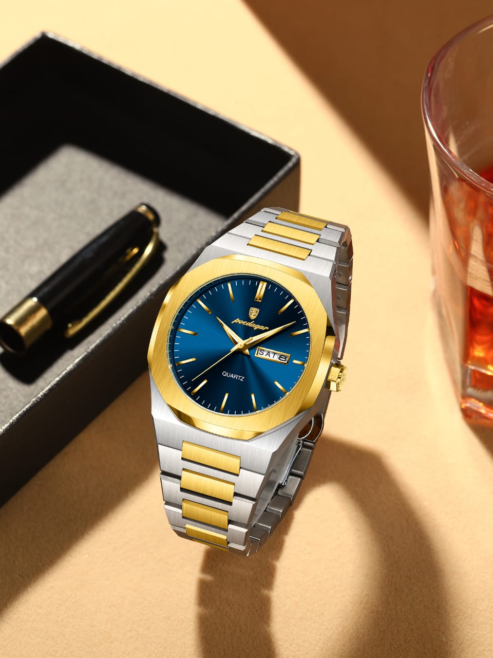 POEDAGAR 825 Top Luxury Men Clock Waterproof Luminous Calendar Man Wristwatch Sports Stainless Steel Quartz Men's Watches