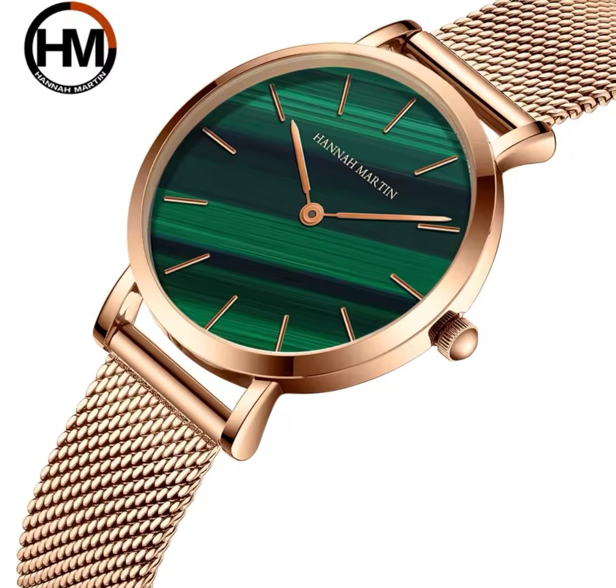 Stainless Steel Mesh Band Hannah Martin HM036 Quartz Movement High Quality Waterproof Women IP Plating Black Ladies Watch