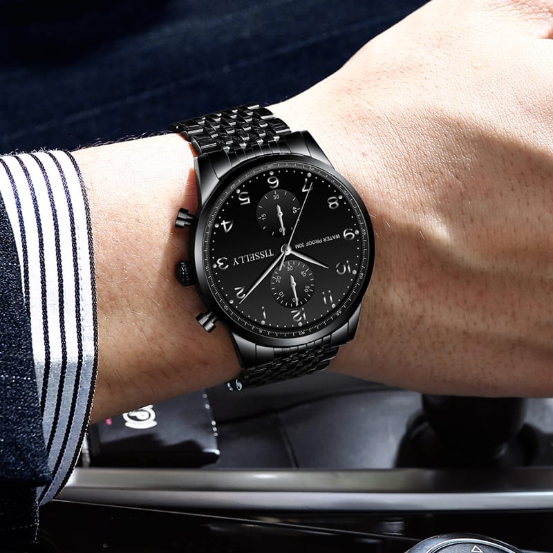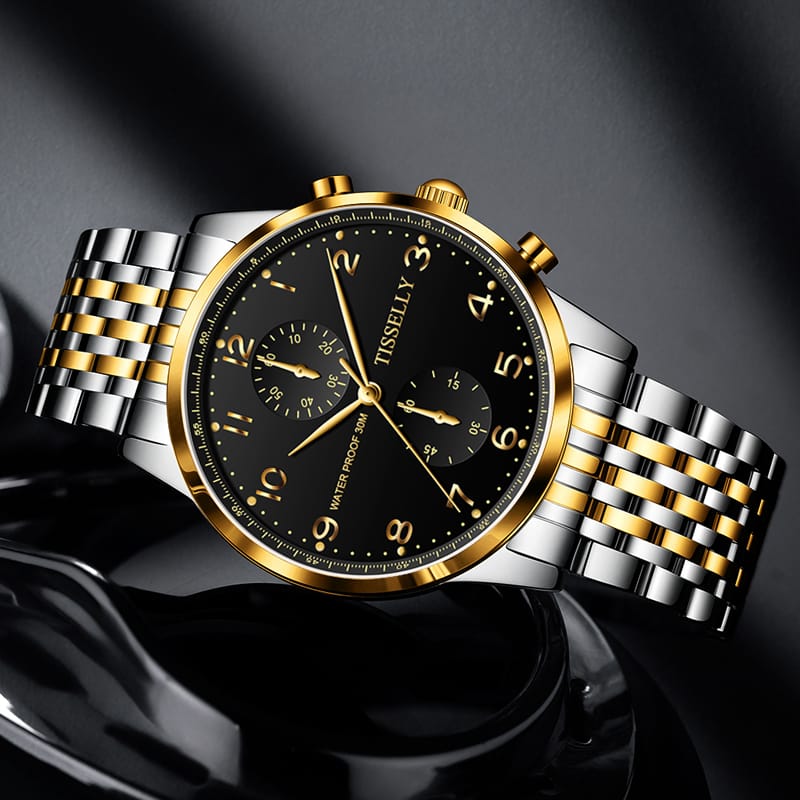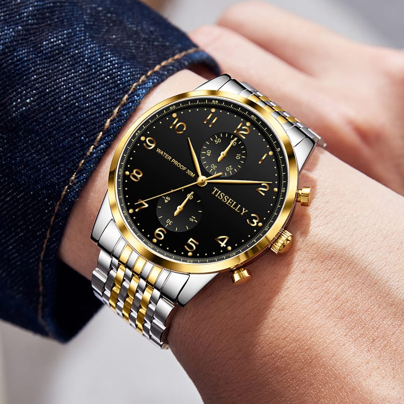 Tisselly T001 Luxury Quartz Watch Stainless Steel Back and Gold Mens Watch Analog Quartz Watch